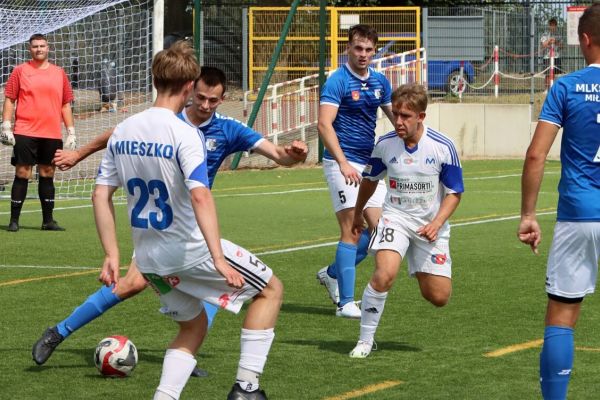 Już w 1 minucie młody zespół z grodu Lecha złożony głównie z wychowanków Akademii Mieszka Gniezno, mógł wyjść na prowadzenie. Rajd prawą stroną boiska przeprowadził Nikodem Szociński, kończąc go strzału z ostrego kąta. Bramkarz Orlika zdołał wybronić jednak strzał i gola dla Mieszka nie było. W 19 minucie Sergiusz Kaźmierczak z prawego s…