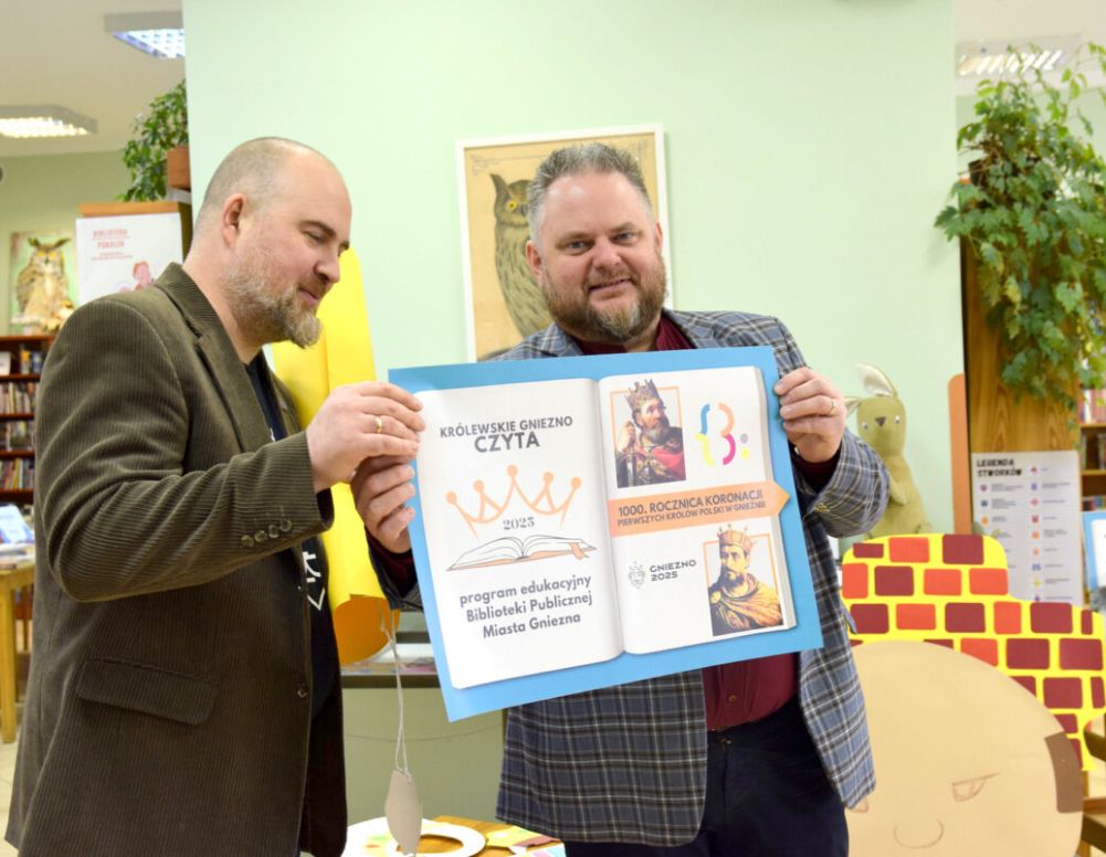 Gnieźnieńska Biblioteka Publiczna pełniła w piątek, 3 stycznia, honory królewskiego dworu – między regałami pojawiły się liczne koronowane głowy z Przedszkole nr 13 „Gniazdo Orląt” w Gnieźnie. A okazja ku temu była zaiste królewska – wspólnie rozpoczęto cały rok wydarzeń czytelniczych wokół milenium koronacji pierwszych królów Polski. Biblioteka ogłosiła Królewskie Wyzwanie Książkowe. Wspólnie odsłuchano też królewskiego skryby oraz dawnych opowieści sprzed ponad tysiąca lat, gdy Bolesław Chrobrym był jeszcze małym Bolkiem. Były one równie ciekawe, jak współczesne opowieści zastępcy prezydenta Łukasza Mucioka o tym, jak teraz rządzi się… Gnieznem.