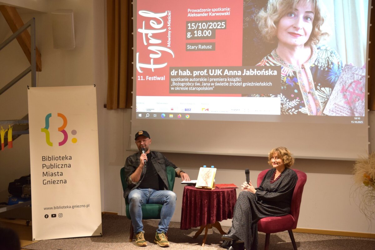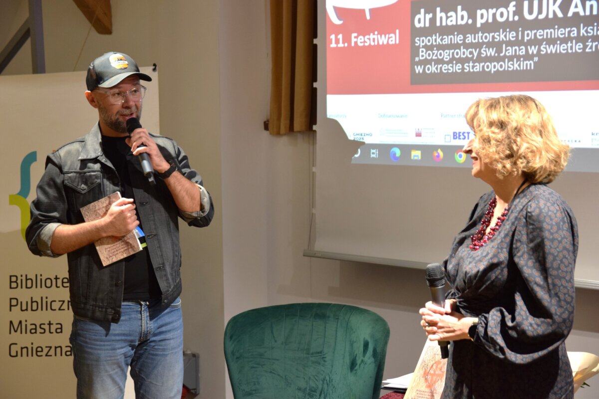 Prowadzi ona czytelnika nie tylko przez dzieje bożogrobców od czasu ich zaproszenia na wzgórze świętojańskie (krzyżackie), ale wyjaśnia ideę ich powołania, dzieje w kraju i na świecie, poznajemy kolejnych ich prepozytów (proboszczów), spory które toczyli czy poznajemy uposażenia wsi (np. Zdziechowa). Anna Jabłońska z racji faktu, że nie ostały się do naszych czasów dokumenty wewnętrzne klasztoru, musiała odtwarzać żywot zakonników z akt sądu kościelnego. Tym samym nie badała ich dziejów od wewnątrz, tylko z zewnątrz. Być może wymuszona tak metoda badawcza jest ciekawsza, bo pokazuje historię zakonu barwniej, momentami też sensacyjnie. W końcu, przejrzenie sporów toczonych przed sądem wnosi to, czego zapewne nie odnotowaliby sami bożogrobcy. Premiera książki miała miejsce w kościele św. Jana, w dniu 14 października, a dzień później, w Starym Ratuszu autorka spotkała się z czytelnikami. W tych dniach było można nabyć książkę, która ukazała się drukiem za sprawą wydawnictwa Rys z Dąbrówki pod Poznaniem (można ją kupić online). To drugie spotkanie odbyło się w ramach festiwalu „Fyrtel”, a poprowadził je nasz redakcyjny kolega Aleksander Karwowski. Książka spotkała się w Gnieźnie z ogromnym zainteresowaniem, co jest podkreśleniem faktu, że mieszkańcy chcą poznawać i zgłębiać historię swojego miasta, a bożogrobcy byli w niej do tej pory białą plamą. Na szczęście, dzięki Annie Jabłońskiej, już nie są, i od tego momentu historia zakonu wróci do miasta i stanie się częścią jego współczesnego życia. (red., oprac. ak)