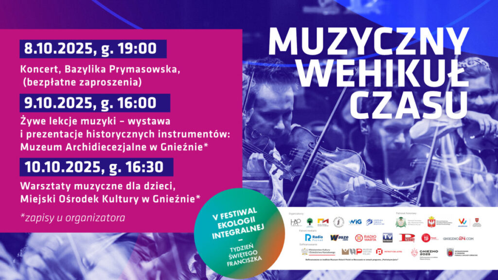 To będzie muzyczna gratka dla miłośników muzyki klasycznej. Po latach posuchy koncertowej w wydaniu lokalnych twórców, w końcu od kilku lat, możemy sycić się dziełami komponowanymi na skrzypce czy wiolonczelę w wykonaniu gnieźnieńskich muzyków. Za sprawą Capella Musica Gnesnensis oraz wsparcia mecenasów, w naszym mieście po raz trzeci zagości Festiwal Ekologii Integralnej, a jego lokalną częścią będzie „Muzyczny Wehikuł Czasu” – ciekawy projekt muzyczno-edukacyjny.