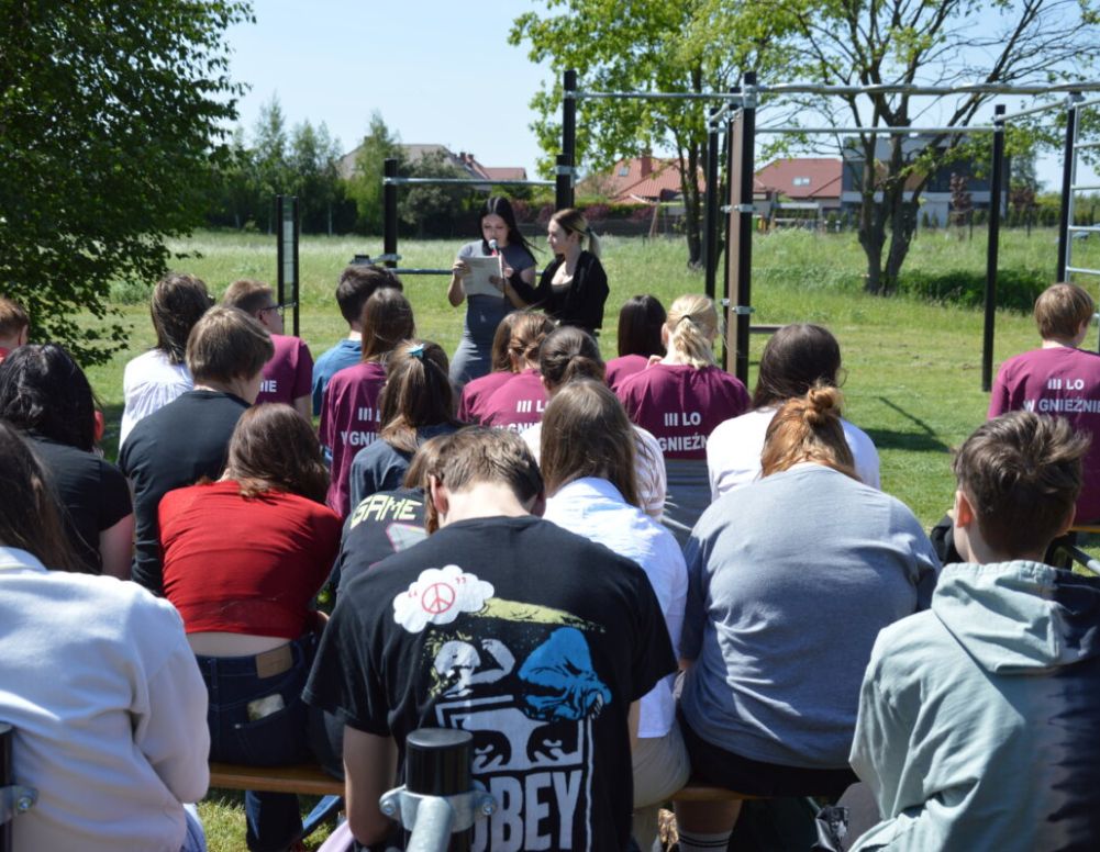 Kolejne spotkanie z twórczością Witolda Gombrowicza odbyło się w piątek, 17 maja. Tym razem czytanie odbywało się w plenerze – (a jakże!) przy ulicy Gombrowicza w Gnieźnie (rejon osiedla Skiereszewo). Uczniowie z gnieźnieńskich szkół ponadpodstawowych – I LO, II LO, III LO, Zespołu Szkół Ponadpodstawowych nr 3, Zespołu Szkół Ekonomicznych i Cechowej Szkoły Rzemieślniczej, a także Gnieźnieńscy Ambasadorzy Czytelnictwa odczytywali fragmenty “Dzienników”, „Autobiografii pośmiertnej” i Kronosa”. Gombroprojekt przewiduje także warsztaty edukacyjno – artystyczne dla młodzieży ze szkół ponadpodstawowych, które zostaną zwieńczone wspólnie przygotowanym spektaklem – to już niebawem.