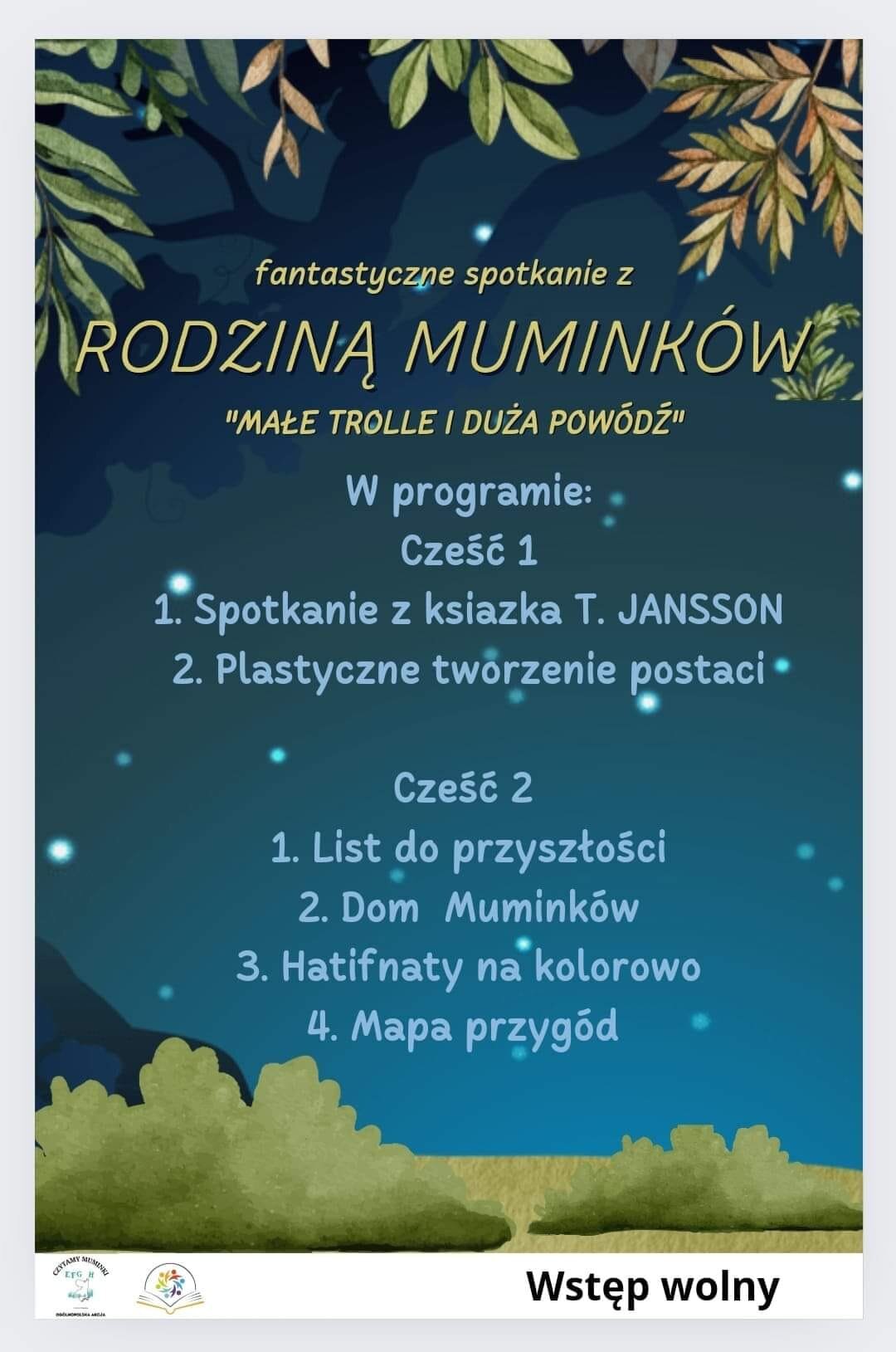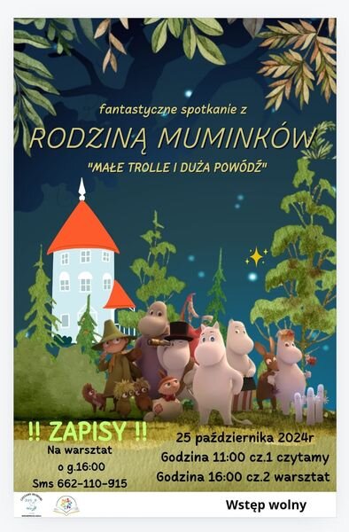 Najbliższe z takich spotkań odbędzie się w piątek, 25 października. Zostanie ono poświęcone książce „Małe trolle i duża powódź”. Wydarzenie podzielone zostało na dwa warsztaty literacko – plastyczno – kreatywne: o godz. 11. (warsztaty z Arletą Janicką, podczas których uczestnicy przeniosą się do muminkowej Doliny, poznając jej mieszkańców i tworząc ich postacie), o godz. 16. (warsztaty z Anną Nowak – Szajdą, polegające na kreatywnej wyprawie do miejsc, które odwiedziła rodzina Muminków w pierwszej części).