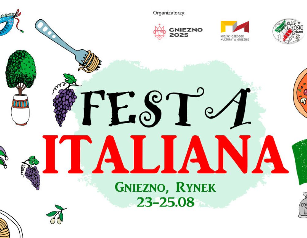 Przedostatni weekend sierpnia w Pierwszej Stolicy Polski zapowiada się bardzo ciekawie. W ramach Królewskiego Festiwalu Artystycznego na gnieźnieńskim rynku odbędzie się Festa Italiana. Na podróż do pięknej i słonecznej Italii zaprasza Miejski Ośrodek Kultury. Wydarzenie będzie się odbywać w dniach 23 – 25 sierpnia.