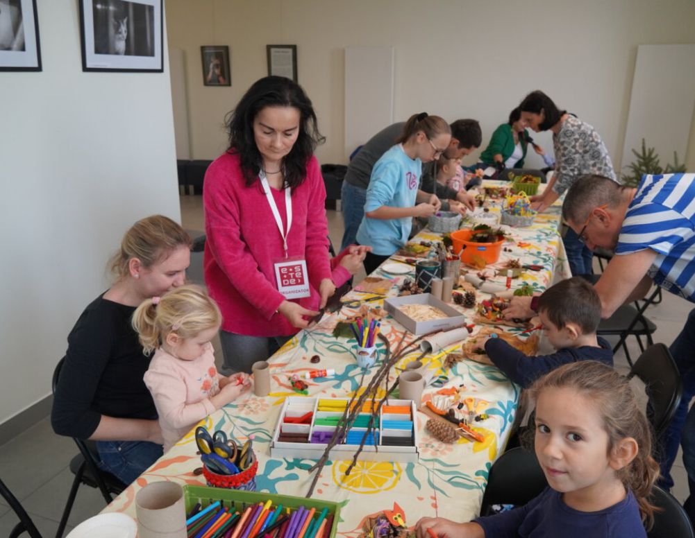Rodzinna sobota jest inicjatywą, która regularnie powraca do CK „eSTeDe”. Każde wydarzenie jest szansą dla rodzin z dziećmi na wspólne spędzenie wolnego czasu z różnymi formami aktywności – od twórczych działań, po doświadczanie innych artystów. Szeroko rozumiana kultura przybiera różne formy, dlatego każdy z warsztatów jest poświęcony innemu zagadnieniu. – Rodzinną sobotę, tym razem z akcentami jesieni, rozpoczęliśmy od zajęć z najmłodszymi. Podczas kreatywnych warsztatów powstały wspaniałe kompozycje z kasztanów, żołędzi, liści, szyszek, orzechów, plasteliny itp. Dziecięca wyobraźnia nie ma ograniczeń, mogliśmy podziwiać zatem m.in. jeże, sowy, jednorożce, wszelkie stworzenia i rzeczy, które tylko przyszły naszym twórcom na myśl – mówiła Paulina Goślińska – Nowik, kierownik Centrum Aktywności Społecznej „Largo” w „eSTeDe”.