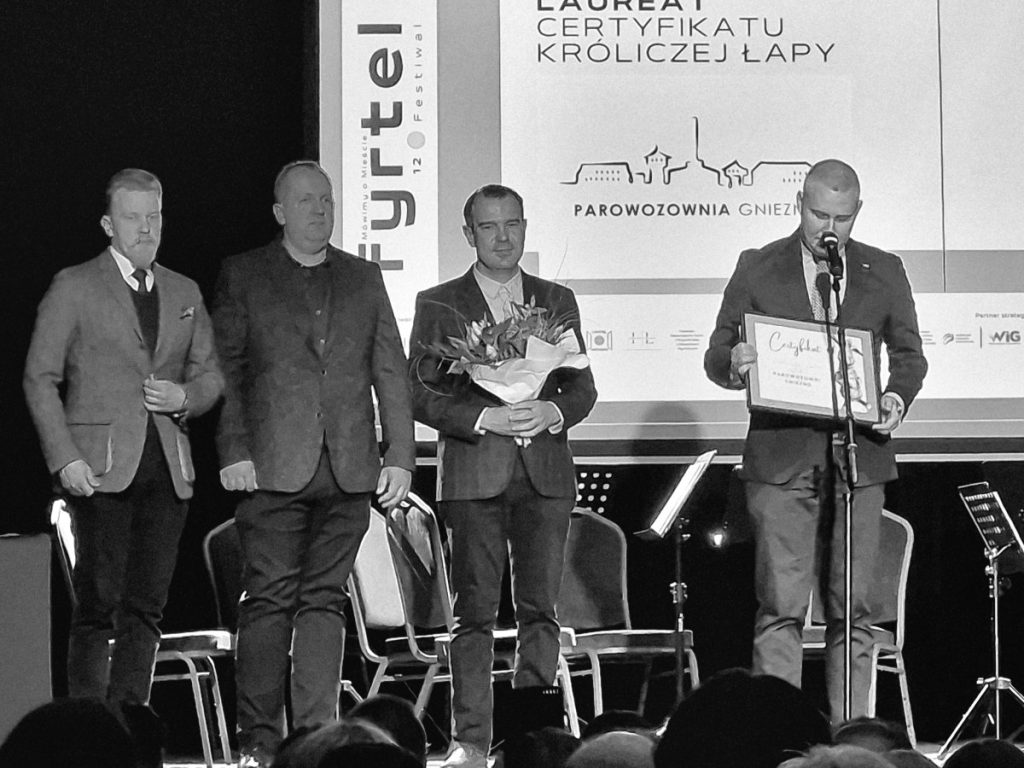Certyfikat Króliczej Łapy, czyli kulturalny znak jakości, przyznano Parowozowni Gniezno za „Dni Pary”. Wydarzenie, organizowane przez stowarzyszenie dbające o nasz fantastyczny i zmagający się z ogromnymi wyzwaniami zabytek, jest głosem, a raczej głośnymi gwizdkiem parowozu, że parowozownia jeszcze istnieje i istnieć musi. I może stać się miejscem przyjaznym kulturze.