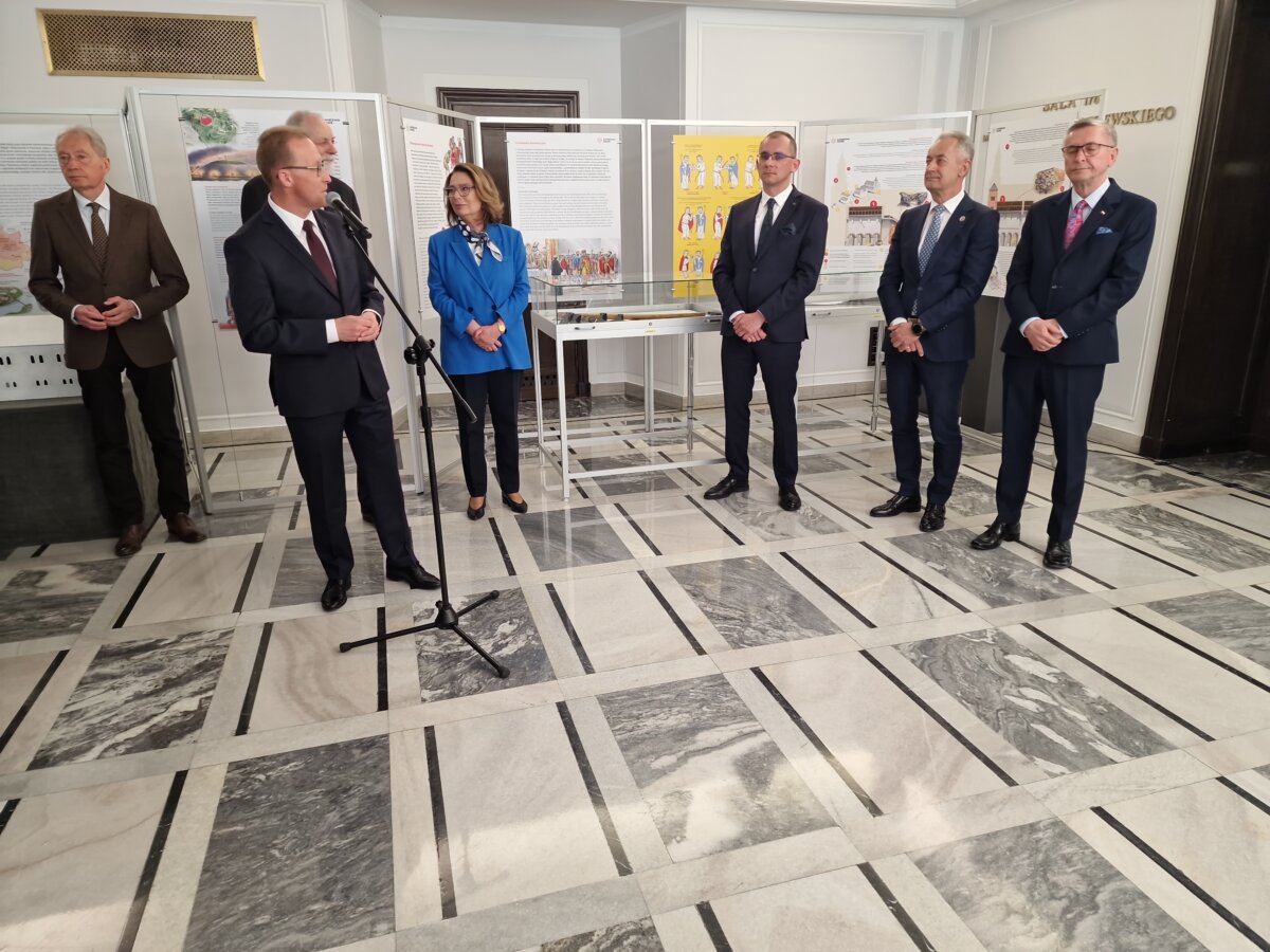 Tuż przy głównym wejściu do sali plenarnej Senatu RP prezentuje się obecnie wystawa, którą polskim parlamentarzystom oraz wszystkim odwiedzającym parlament zaprezentowało Miasto Gniezno wraz z Muzeum Pierwszych Piastów na Lednicy. Okazja jest nie byle jaka. To symboliczne zaproszenie do pierwszej stolicy Polski na uroczyste obchody roku 2025, który jest Rokiem Milenium Koronacji Dwóch Pierwszych Królów Polski w Gnieźnie. W sercu polskiej demokracji zaprezentowano 40 barwnych ilustracji-rekonstrukcji autorstwa świetnego gnieźnieńskiego ilustratora Jarosława Grygucia. Artysta odpowiedzialny jest za cały scenariusz i szatę graficzną wystawy, a zaprezentowane muzealia udostępniło lednickie muzeum. – To bardzo ważne, żeby przypomnieć sobie początki naszego państwa: jak powstało, dlaczego powstało i co cementowało ludzi na tych ziemiach, że chcieli razem działać, osiedlać się tutaj i pracować. Polacy, tak samo tysiąc lat temu, jak i teraz, byli bardzo ambitni i dążyli do jak najlepszych warunków życia dla siebie i swoich rodzin, do bezpieczeństwa. Zawsze chcieli być też w sercu Europy. Przez ten tysiąc lat się nie zmieniliśmy. Chcemy być w sercu Europy. Chcemy, żeby Polska była bezpieczna, szczęśliwa i by każdy odnalazł tutaj swoje miejsce – mówiła Małgorzata Kidawa-Błońska podczas otwarcia wystawy. Towarzyszyli jej Michał Powałowski, prezydent Gniezna, obecni i byli parlamentarzyści z ziemi gnieźnieńskiej i okolic oraz przedstawiciele Sejmu i Senatu RP.
