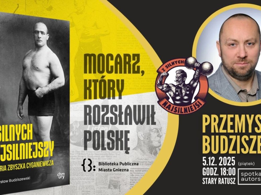 Biblioteka Publiczna Miasta Gniezna serdecznie zaprasza 5 grudnia 2025 roku o godzinie 18:00 do Starego Ratusza miłośników historii, sportu i siły na wyjątkowe spotkanie, podczas którego przypomniana zostanie postać tego zapomnianego herosa. Cyganiewicz, chłopak z Podkarpacia, trzykrotnie zdobywał tytuł mistrza świata w zapasach, a jego pojedynki elektryzowały publiczność od Europy po Amerykę, przyciągając na widownię nawet królewskie i prezydenckie głowy.