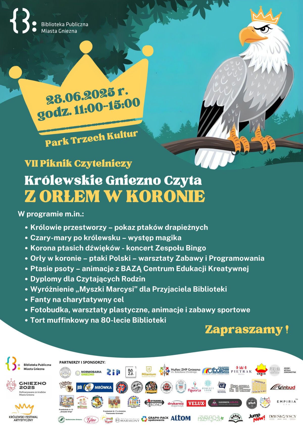 Już po raz siódmy Biblioteka Publiczna Miasta Gniezna zaprasza mieszkańców na czytelnicze powitanie lata! W sobotę, 28 czerwca, w zielonym plenerze Parku Trzech Kultur, odbędzie się największe biblioteczne wydarzenie w mieście. Wiadomo, każda pliszka swój ogonek chwali, ale tym razem szykuje się prawdziwie królewska uczta – w sam raz na milenijny 2025 rok. Jednak zamiast koronowanych głów w roli głównej pojawią się polskie ptaki, na czele z Orłem w Koronie!