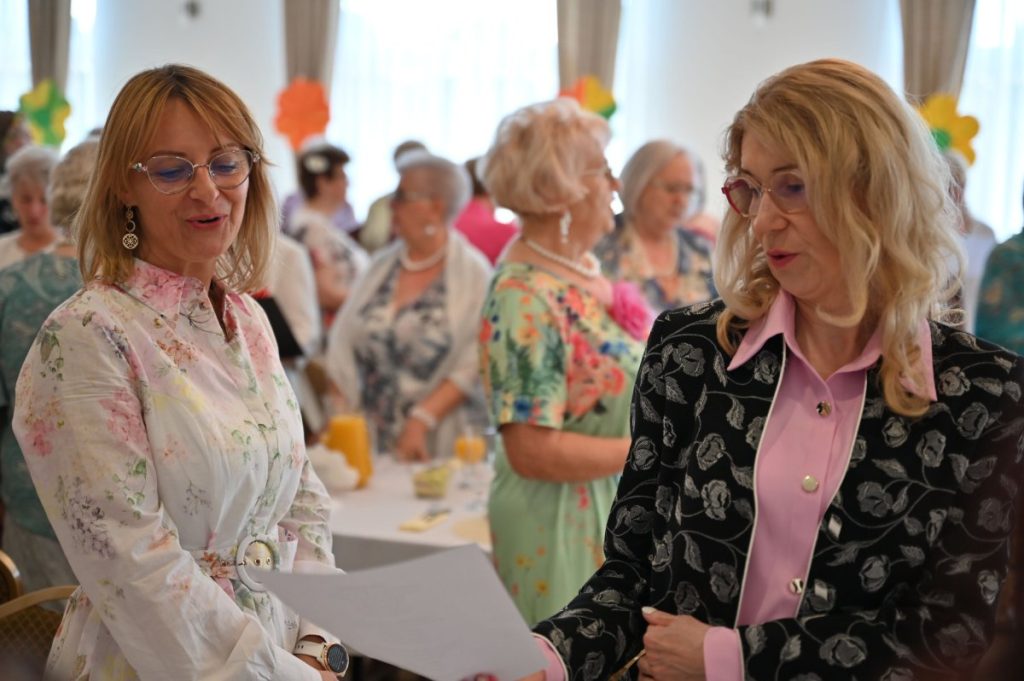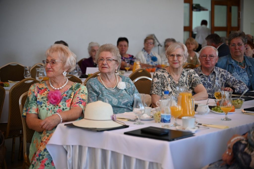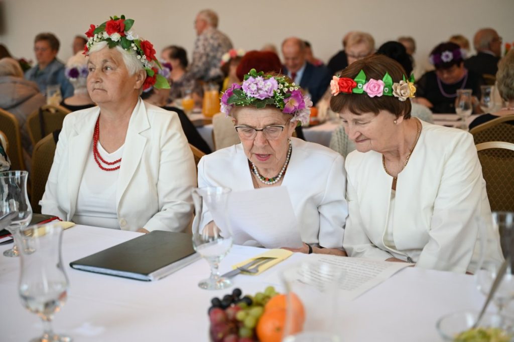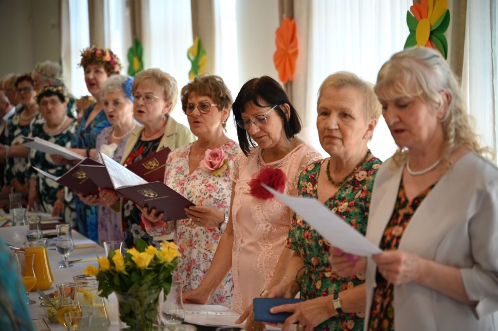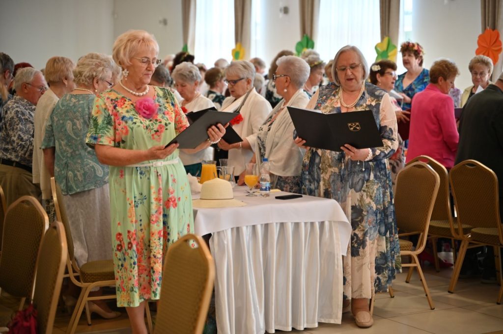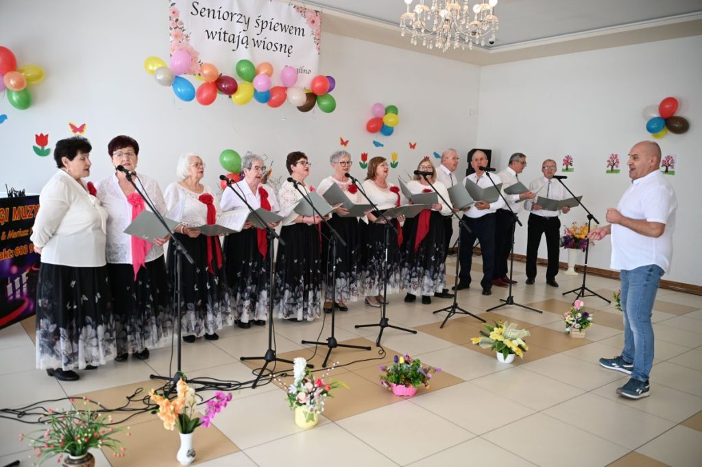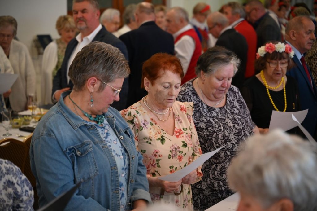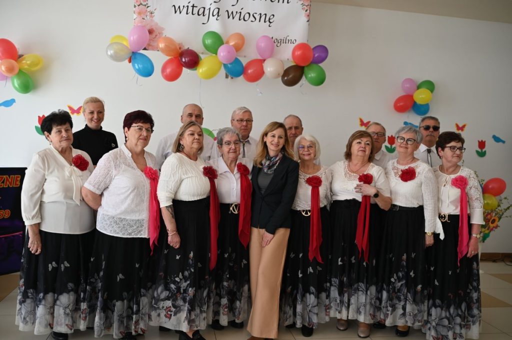 Spotkanie, które prowadziły radna powiatowa Iwona Golis i pracownica działu promocji Starostwa Powiatowego w Mogilnie Aleksandra Heinich rozpoczęła Zofia Michalska, która powitała wszystkich przybyłych, a szczególnie posłankę na Sejm RP Magdalenę Łośko, władze powiatowe i gminne oraz seniorów – Cieszymy się, że pani poseł zaszczyciła nas swoją obecnością. Jest nam też niemiernie miło, że gościmy w Mogilnie aktywnych, śpiewających i zaangażowanych seniorów, którym śpiew i muzyka sprawia wielką radość. Ważne są kontakty międzyludzkie, aktywności wszelkiego rodzaju, które mają dobroczynny wpływ na nasze zdrowie i dobre samopoczucie – mówiła Zofia Michalska. Ciepłe słowa w kierunku seniorów wygłosili też dyrektor Mogileńskiego Domu Kultury Paweł Gębala i jego zastępczyni Kinga Woroch.
