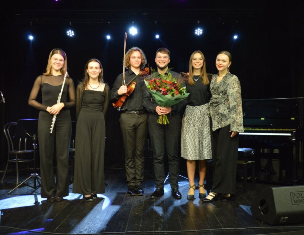 Utwory Krystiana Kleja wykonał kameralny skład muzyków zaprzyjaźnionych z kompozytorem: Katarzyna Sobich (fortepian), Zuzanna Kubacka (wiolonczela), Mikołaj Kubacki (altówka) i Urszula Tuchołka (flet). Spotkanie poprowadziła Julia Kubacka – Klej. – Ogromnie dziękujemy wszystkim za obecność oraz za wspólne przeżywanie emocji, jakże różnych w każdym utworze. Dziękujemy bardzo Krystianowi Klejowi za bogata twórczość oraz chęć podzielenia się nią w szerszym gronie – mówiła prowadząca. Głos zabrał również sam kompozytor, który dziękował przede wszystkim muzykom za wykonanie utworów, podkreślając też, że ten efekt finalny, czyli sam koncert, poprzedzony został wieloma próbami. – W przygotowaniu mam kolejne utwory, kolejne pomysły na różne składy, także na orkiestrę. Pisanie utworów na orkiestrę jest szczególnie trudne, ponieważ ciężko skoordynować pracę około czterdziestu osób. Ale mam nadzieję, że jeszcze się spotkamy na jakimś kompozytorskim koncercie – powiedział Krystian Klej, dziękując wszystkim za obecność.