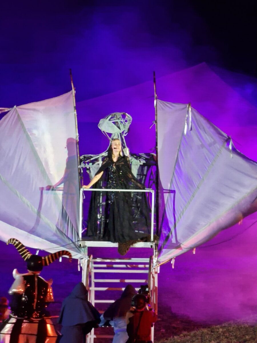 Piękna i podniosła muzyka, świetne wokalistyczne popisy aktorek, ruch sceniczny – alegorystyczny, przejmujący – są ciekawym dopełnieniem. Leżący rozbici wojowie są jak duchy, które wskrzeszają kobiece mary, opłakujące ich los, ale i dające nadzieję. Plac okrążają duchy przyszłości – wizje tego, co dopiero ma nadejść, a o czym Chrobry przed tysiącem lat wiedzieć nie mógł. Nie wiedział, że będzie coś takiego jak Polska, z jej osiągnięciami, porażkami, trudnymi losami. Mógł tylko o tym marzyć. Tutaj widzimy duże instalacje, znane nam z Teatru Ósmego Dnia. Powtórzę to jeszcze raz – skoro jest to sztuka teatralna, to widz musi analizować tekst, kontekst kulturowy, historyczny i wyciągnąć z tego refleksję. Zawiodą się ci widzowie, którzy liczą na martyrologię. Nie ma tu cierpienia narodu, ale jest coś ludzkiego i dającego patriotyczną siłę. To zwrócenie się do człowieka i jego wartości. Nie korona – czysty metal, ale serce jest podstawą do czynienia dobra. Nie miecz zimny i nietrwały jest gwarantem wielkości, ale to, jak traktujemy dzieci i z jakim kapitałem wejdą w dorosłość. W czasach wojennych, z tym ogromnym napięciem międzynarodowym, to pacyfistyczny przekaz. Ale kiedy widzimy tyle cierpienia wokół, jedyny słuszny. Choć sama sztuka jest nierówna, bo pierwsze około pół godziny trzyma w napięciu, to potem ono opada i można sobie poobserwować elementy scenografii i choreografii, które są ciekawe. Jakie emocje wzbudza „Milenium Koronacji Królewskich”? To już pytanie do widzów, ale czytając pierwsze opinie i relacje w internecie – jest ich sporo i to jest aspekt pożądany. W kraju, w którym do teatru chodzi mała część społeczeństwa, wyniesienie teatru do formy widowiska plenerowego jest słuszne. Bo w czasach bezpośredniości i prostości przekazu w telewizji czy internecie, warto „przefiltrować” podany nam obraz i zmusić się do refleksji. Z niej zawsze coś zostaje w nas bogatego.