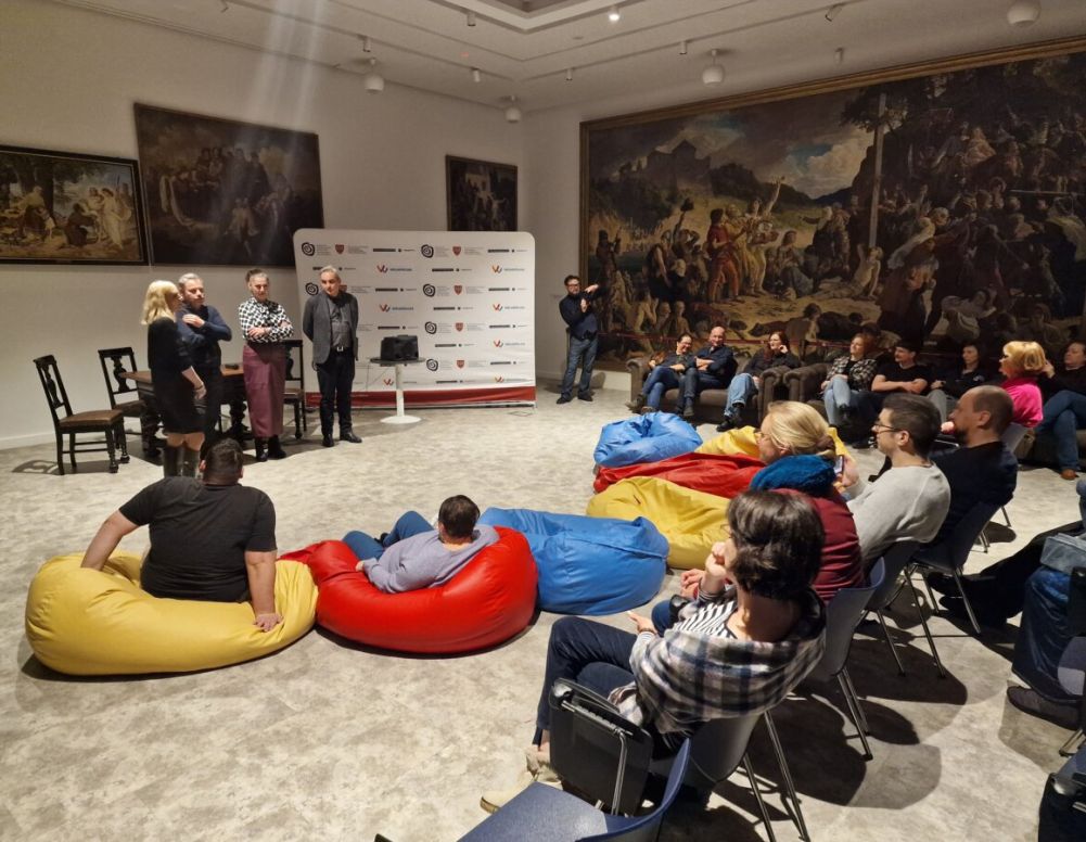 Ogólnopolski projekt „Słucho-wizje”, który jest realizowany przez gnieźnieńskiego wydawcę i jego redaktorów – Zeszyty Poetyckie, przy wsparciu również m.in. gnieźnieńskiej Kuźni Literackiej, zatacza coraz szersze kręgi w świecie miłośników literatury, umożliwiając im zapoznanie się z interpretacjami wydawanych przez Zeszyty Poetyckie dramatów czy kryminałów, w formie słuchowisk. To nowa jakość w wyjściu w kierunku miłośników literatury z – po wielu latach – ponownie popularnymi opowieściami na dźwięk i słowo mówione. Muzeum zaprosiło do siebie gnieźnian (i jak się okazało, nie tylko oni tutaj dotarli), by zapoznali się z zrealizowanymi w formie dźwiękowej wydawnictwami autorstwa Igora Frendera z Poznania, Dagmary Kacperowskiej z Kłodzka oraz Jarosława Mikołajczyka z Gniezna. Gościem specjalnym był aktor Robert Gonera, który w słuchowisku „Lockator” D. Kacperowskiej wcielił się w postać Pana Ka. Jak mówi aktor – forma interpretacji literatury przez dźwięk – w przeciwieństwie do filmu – zmusza odbiorcę do specjalnej koncentracji. Zresztą Robert Gonera ma już spore doświadczenie w tworzeniu audiobooków. – Ale tutaj jest inaczej, ponieważ mamy do czynienia z dramatem. Było trzeba tutaj zbudować konkretną postać i wypełnić ją sobą. To jest niezwykle istotne, żeby dać mu cechy osobowościowe nie tylko czytając, jak ma to miejsce przy tworzeniu audiobooków. W ogóle, dramat jest świetnym materiałem i mnóstwo tego powstaje, mimo ogólnej opinii. Są to bardzo ciekawe rzeczy, tak jak dramat Dagmary, w którym wcieliłem się w postać Pana Ka. To wstrząsająca historia żołnierza, który nie poradził sobie ze swoimi wspomnieniami wojennymi. Było to dla mnie prawdziwe wyzwanie – powiedział nam tuż przed rozpoczęciem wydarzenia aktor.