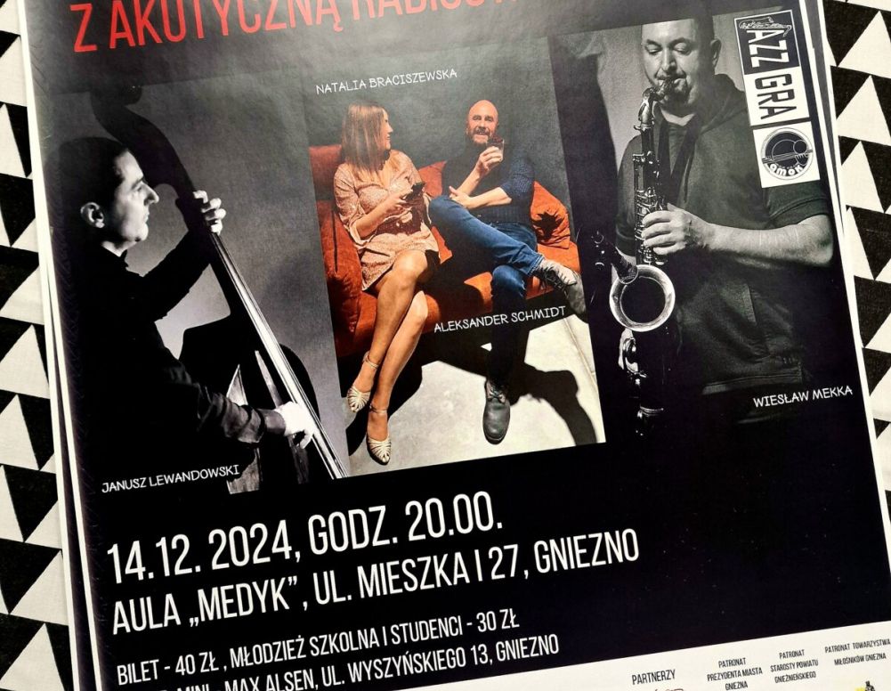 Już od lat Agencja Artystyczna JazzGra z Gniezna zaprasza melomanów na wyśmienitą grudniową ucztę, która jest wróżbą na dobre wejście w okres świąt bożonarodzeniowych. By ten wyczekiwany przez wielu czas rozpocząć w dobrych nastrojach, warto kilka chwil spędzić na słuchaniu muzyki, wybieranej przez szefa agencji – Krzysztofa Gronikowskiego. Wybór padł na „Akustyczną Radiostację”, co jest propozycją nad wyraz celną. Gnieźnieńscy słuchacze dobrze wiedzą, że ta formacja, której trzonem jest duet Natalia Braciszewska i Aleksander Schmidt, potrafi stworzyć podczas koncertu wyjątkowy nastrój. Podczas zbliżającego się koncertu tę dwójkę muzyków wesprą utalentowani goście: Wiesław Mekka – saksofonista, flecista, klarnecista oraz Janusz Lewandowski – kontrabasista. – Mekka to postać znana w środowisku jazzowym i nie tylko. Współpracuje – jak to się mówi – z artystami z pierwszych stron gazet – zachwala muzyka K. Gronikowski. – Natomiast Lewandowski współpracuje m.in. z wokalistką Bendarz, a nawet przed laty z Violettą Villas. To człowiek wielkiej estymy, który na kontrabasie potrafi pokazać maestrię gry – zapewnia organizator koncertu.