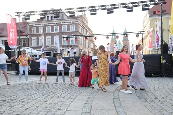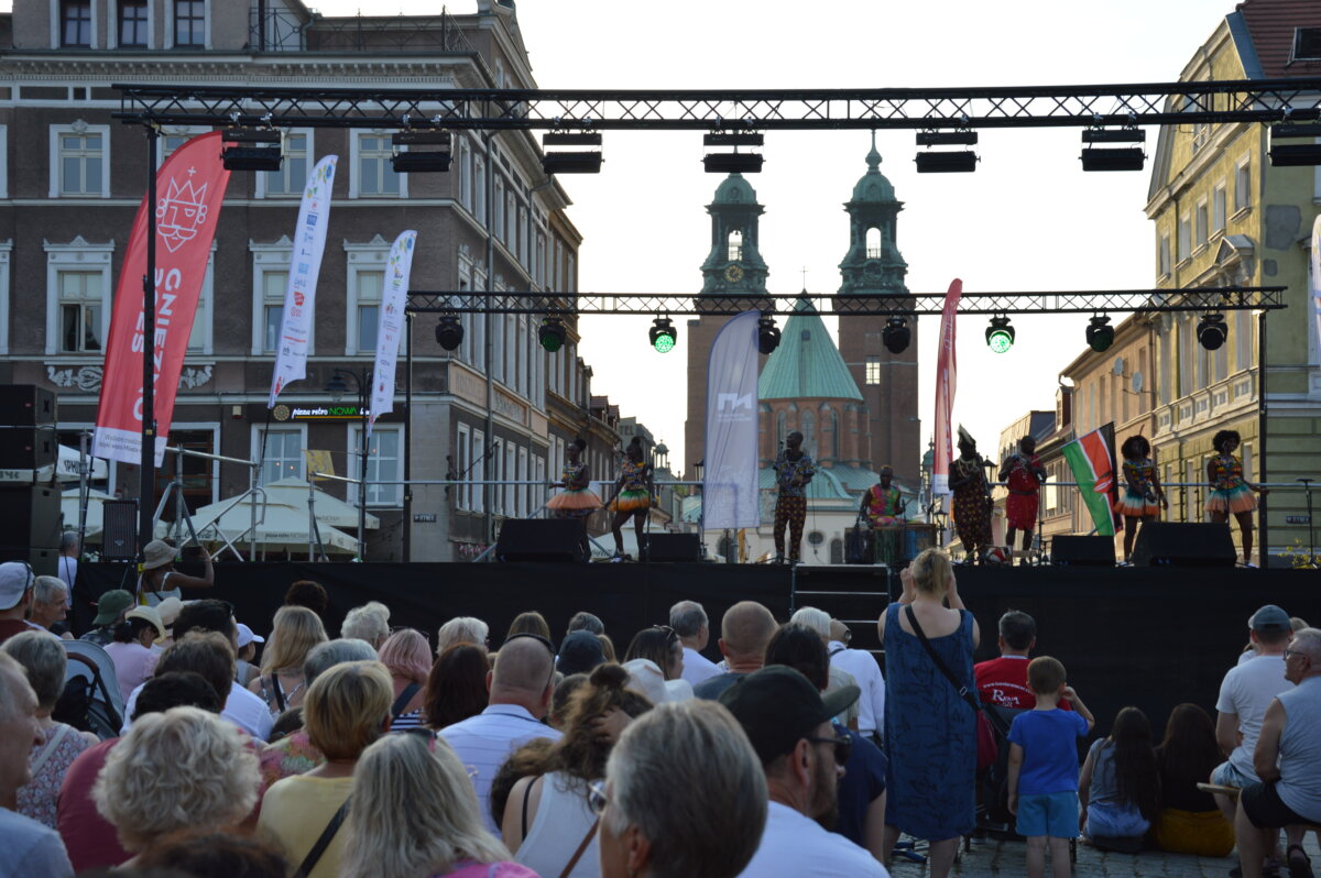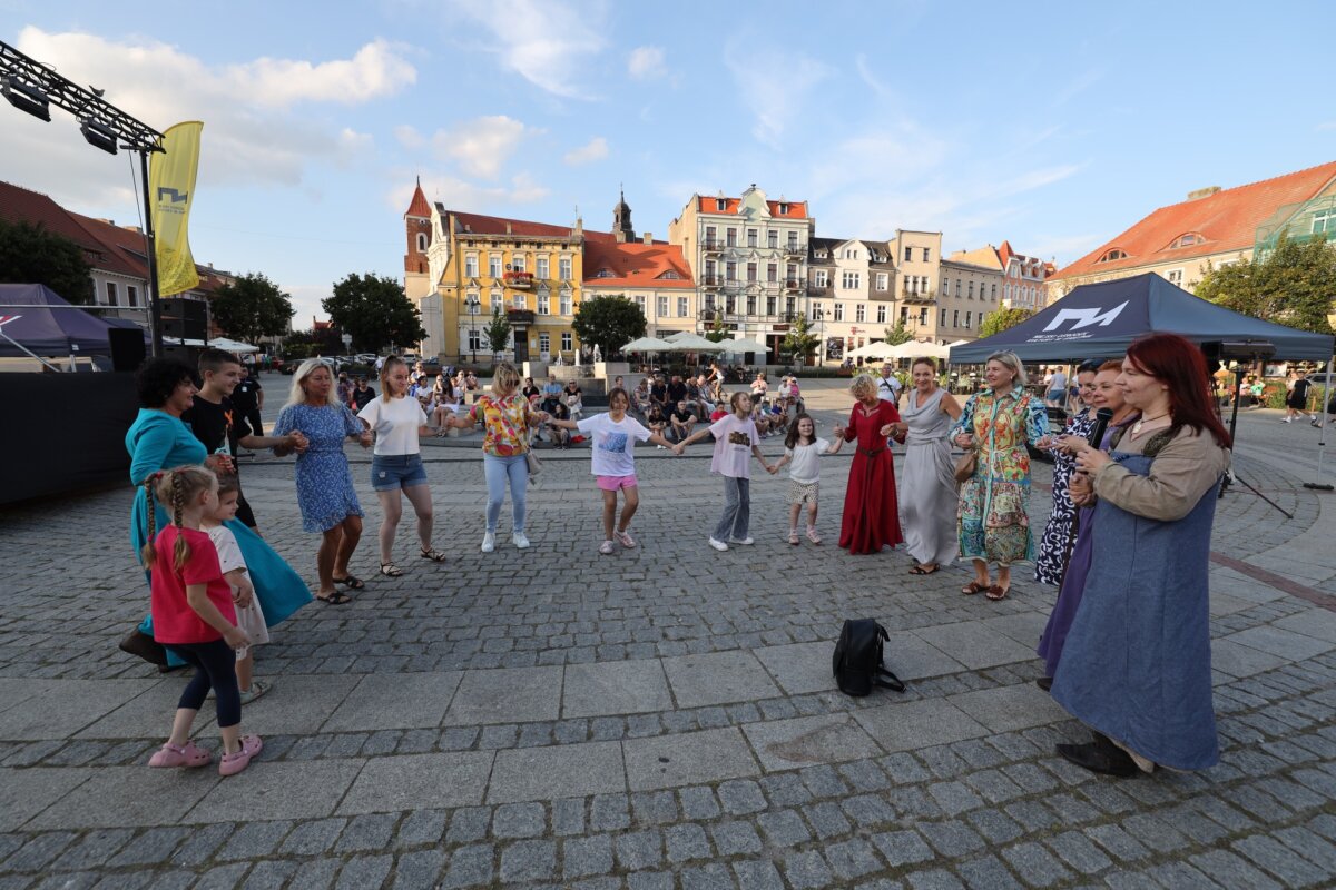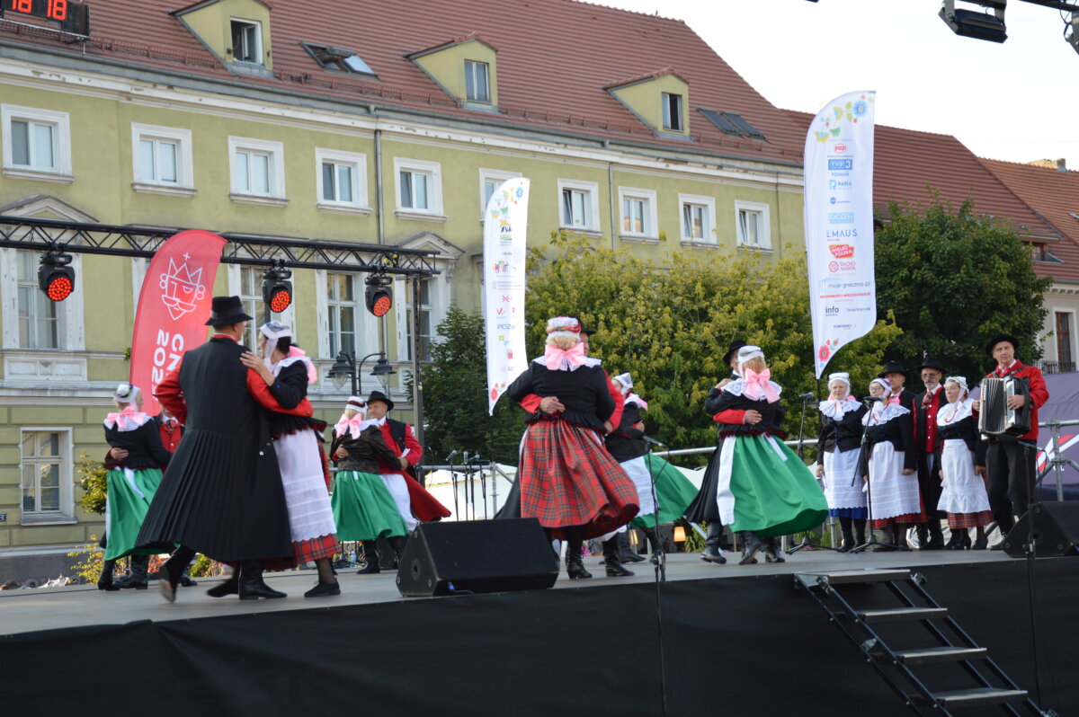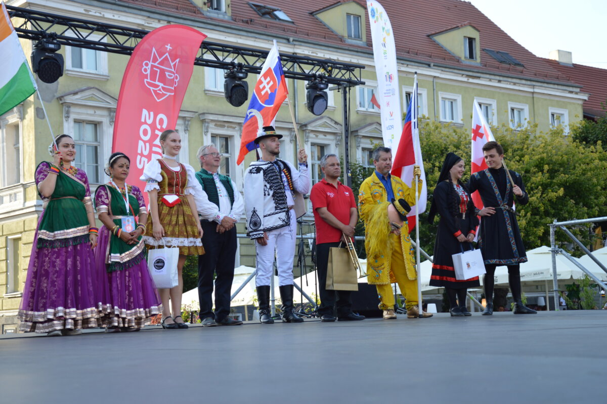 W piątkowe popołudnie i wieczór na gnieźnieńskim rynku można było zobaczyć zespoły taneczne z całego świata: z Kenii, Mongolii, Meksyku, Łotwy, Słowacji, Indii, Senegalu, Kirgistanu, Chile i Gruzji. W tej podróży nie zabrakło także przedstawicieli Polski, którą reprezentowały lokalne zespoły ludowe: Zespół Folklorystyczny „Obertas” i Zespół Tańca Ludowego „Gniezno”. Podczas występów publiczność mogła zanurzyć się w różnorodność ludowych tradycji i obyczajów, pochodzących z najdalszych zakątków świata. Scena tętniła życiem dzięki barwnym kostiumom, autentycznym brzmieniom muzyki etnicznej oraz dynamicznym występom tanecznym, które oddawały ducha i charakter poszczególnych kultur. Całość wydarzenia przebiegała w serdeczne, pełnej entuzjazmu atmosferze, sprzyjającej budowaniu międzynarodowych relacji i wspólnemu świętowaniu.