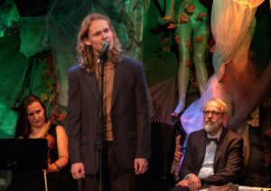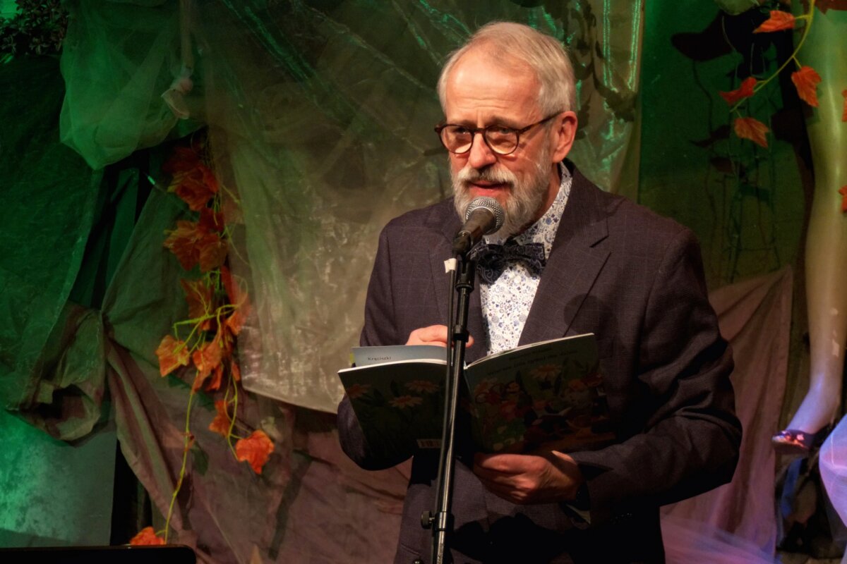 Program wieczoru został podzielony na kilka części poetycko-muzycznych, przeplatanych rozmowami z poetą. W kolejnych odsłonach publiczność mogła usłyszeć wiersze z najnowszego zbioru „Wiersze (nie tylko) dla dzieci” oraz z tomiku „Czerwona biel”. W części poświęconej wierszom dla najmłodszych swoje interpretacje zaprezentowała Katarzyna Zarycka-Stobiecka, natomiast muzyczne opracowania dwóch z nich, „Jeż Pogodny” i „Leśne dzień dobry”, wykonała wokalnie Maria Zarycka. Następnie wybór wierszy z tomiku „Czerwona biel” przedstawił Michał Kamiński oraz Aleksandra Stasik i Katarzyna Żbel. Wiersze „Drżące masz imię” i „W niedokończonych snach” z tego zbioru zabrzmiały także w wersjach wokalnych, wykonanych przez duet Aleksandry Stasik i Katarzyny Żbel.