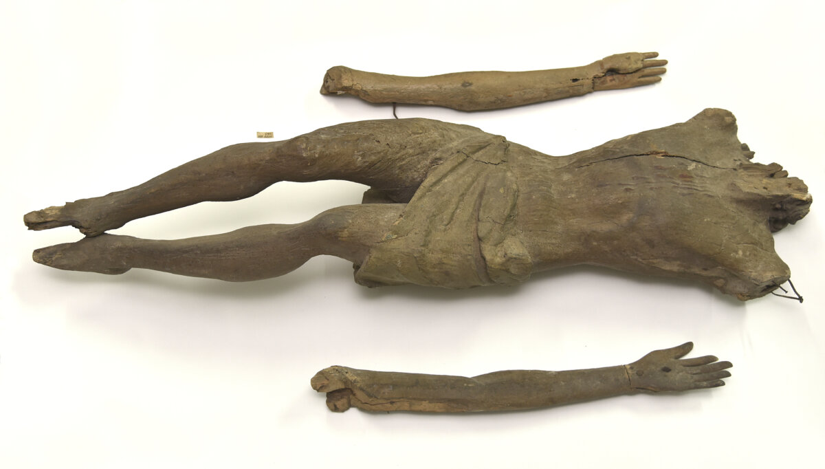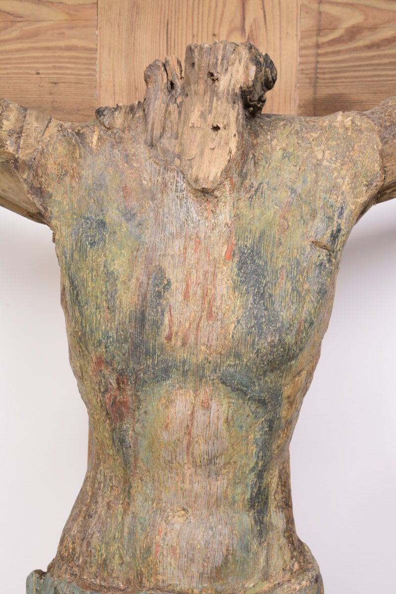 Rzeźba Chrystusa Ukrzyżowanego o numerze inwentarzowym MPP EH 463, przypuszczalnie z krucyfiksu, zachowała się w postaci destruktu. Brakuje głowy i części stopy, ręce były wyłamane. W trakcie konserwacji powierzchnia została oczyszczona z zabrudzeń, usunięto przemalowania, wykonano dezynfekcję i impregnację drewna, wypełniono spękania. Wyłamane ręce połączono z tułowiem. Wykonano częściowe uzupełnienie i rekonstrukcję warstwy malarskiej. Rzeźbę przytwierdzono do wykonanego z desek krzyża. Efekt przeprowadzonej konserwacji można będzie podziwiać w najbliższym sezonie ekspozycyjnym, kiedy to obie rzeźby będą wyeksponowane we wnętrzu kościoła z Wartkowic. Konserwację dofinansowano ze środków Samorządu Województwa Wielkopolskiego. Koszt całkowity zadani wyniósł 51.552,00 zł.