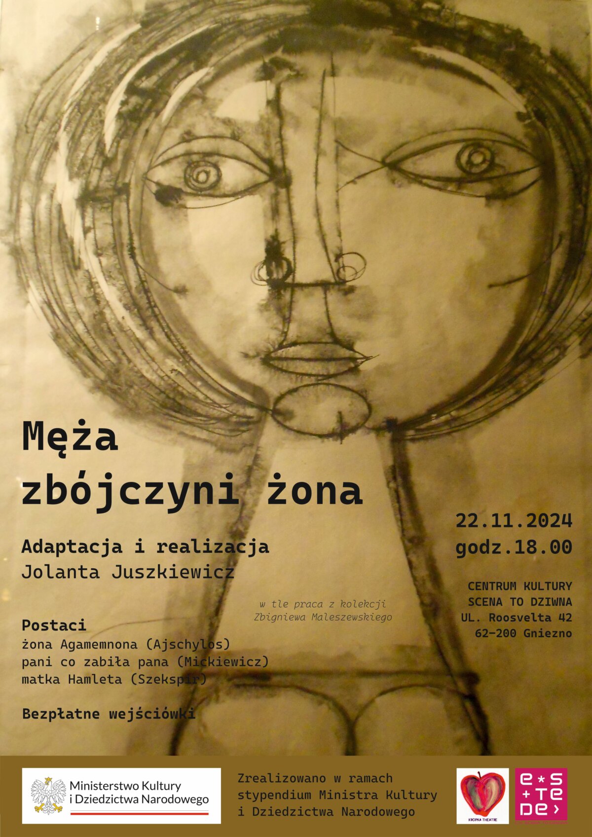 W listopadzie Centrum Kultury „Scena to dziwna” po raz kolejny zaprosi też gnieźnian na emocjonalny monodram. W spektaklu „Męża zbójczyni żona” wystąpi Jolanta Juszkiewicz – reżyserka wystawianych wcześniej w „eSTeDe” – „Pneumy” i „Kobiet Karamazow”. Wydarzenie odbędzie się 22 listopada o godz. 18; bezpłatne zaproszenia można odbierać w sekretariacie CK „Scena to dziwna”. – Przywołane postaci w spektaklu łączy czyn o podwójnym znaczeniu. W wymiarze rzeczywistym dokonują zbrodni z zimną krwią, w wymiarze symbolicznym, jak mówi mitologia – jest to akt sprawiedliwości wymierzony przez jej boginię – Dike. Po czyjej stronie jest wina? O tym dowiemy się już 22 listopada – mówi Lidia Łączny Listopad zakończy na scenie „eSTeDe” wyjątkowy koncert – 40-lecie Mesabi. – Tu grali muzycy związani z Abraxas, Svann, czy Krzysztofem Krawczykiem. Tu grali twórcy kultury naszego powiatu. Tu grali przyjaciele z tych samych dzielnic, którzy znów spotkają się razem na jednej scenie. Podczas występu nie zabraknie także SAiD i przyjaciół zespołu – tej okazji nie można przegapić. Darmowe zaproszenia na koncert można już odbierać w naszym sekretariacie – zaprasza Lidia łączny. Warto jeszcze przypomnieć, że 29 listopada odbędzie się zawsze oczekiwana, szczególnie przez najmłodszych – Gnieźnieńska Noc Naukowców. Szczegóły tego wydarzenia już wkrótce.