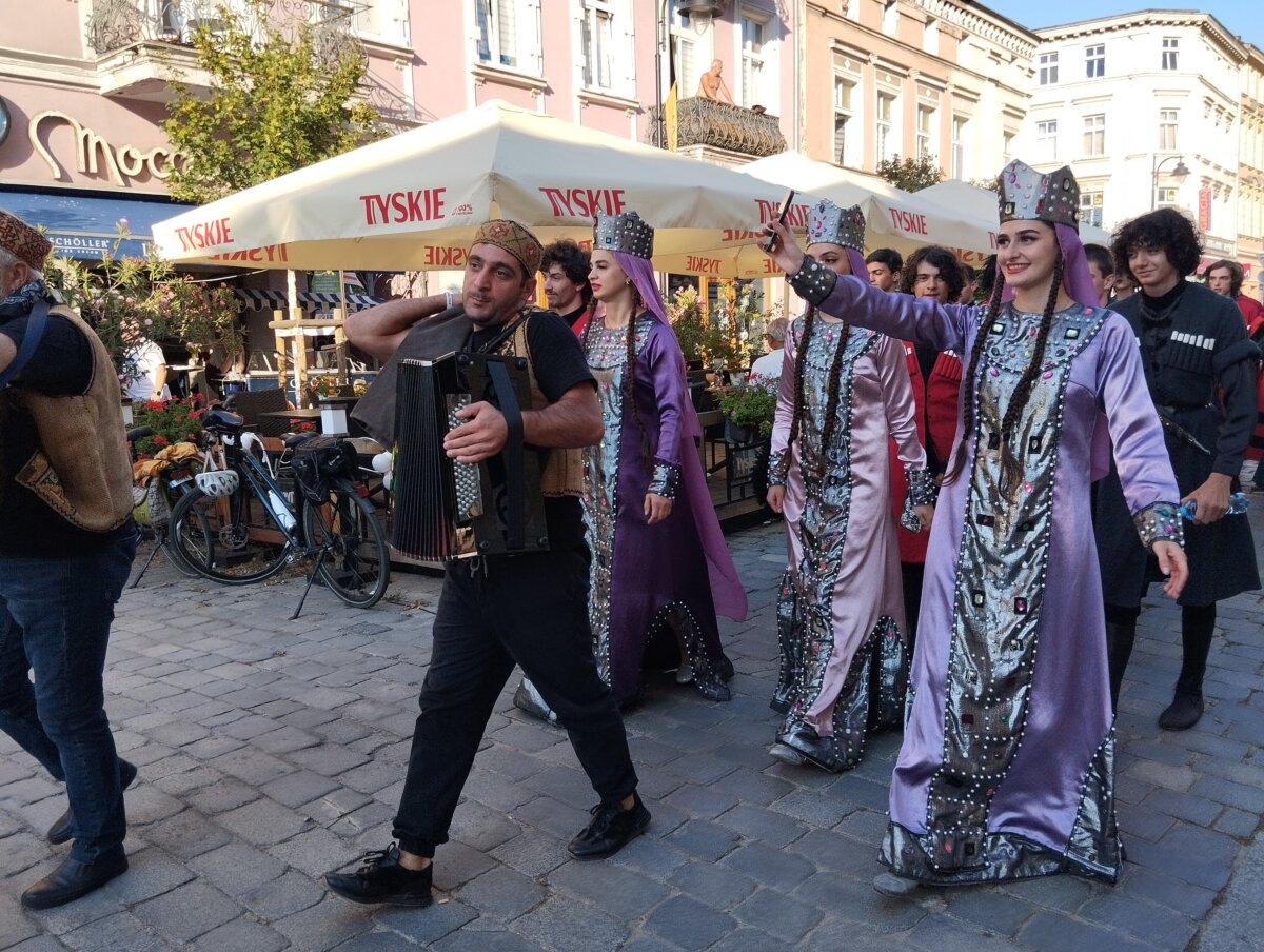 W piątkowe popołudnie i wieczór na gnieźnieńskim rynku można było zobaczyć zespoły taneczne z całego świata: z Belize, Senegalu, Meksyku, Ukrainy, Burundi, Gruzji i Tajwanu. W tej podróży nie zabrakło także przedstawiciela Polski, którą reprezentował Zespół Folklorystyczny „Obertas” z Gniezna. W ramach spotkań zaprezentowano bogactwo tradycji i zwyczajów ludowych z różnych zakątków globu, ukazując tym samym piękno folkloru w różnych przejawach. Publiczność miała okazję podziwiać barwne stroje ludowe, wysłuchać tradycyjnej muzyki i uczestniczyć w pokazach tanecznych, które doskonale oddawały bogactwo kulturowe poszczególnych narodów. A wszystko to odbywało się w przyjaznej i radosnej atmosferze, wzmacniającej więzi między ludźmi z całego świata poprzez wspólne celebrowanie tradycji i kultury ludowej. Tegoroczne Międzynarodowe Spotkania z Folklorem stały się elementem dużego wydarzenia, jakim był Festiwal Sztuki Ludowej – projekt, realizowany przez Towarzystwo „Poligrodzianie”.