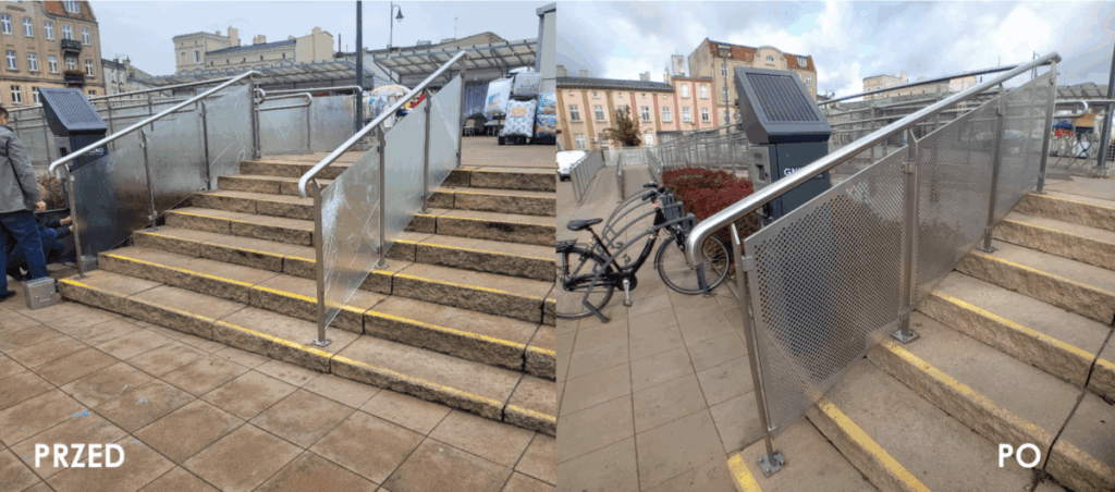 Po rewitalizacji targowiska w 2014 roku było tam jakby luksusowo, jednak czas i sami mieszkańcy zweryfikowali pierwotne zamysły projektantów i szklane elementy poręczy musiały ustąpić miejsca blasze.