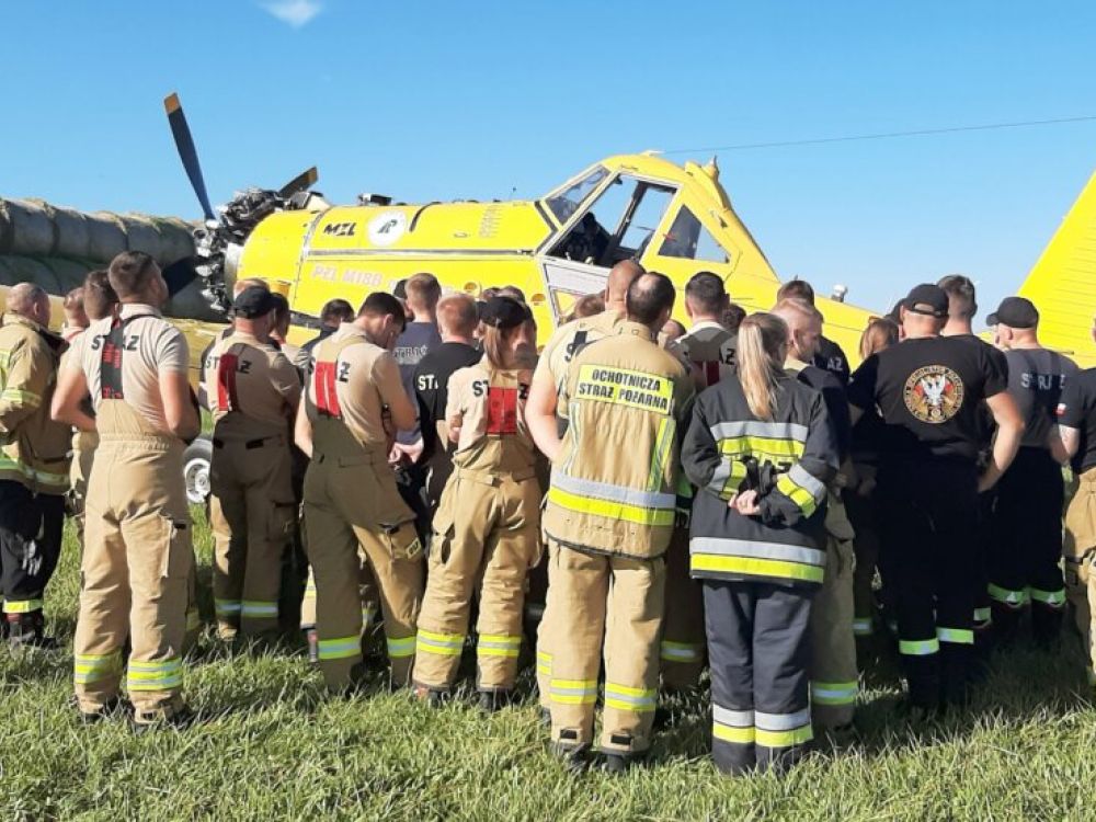 Dromader przyleciał do Działynia. Lokalne OSP uczyły się z nim współpracować