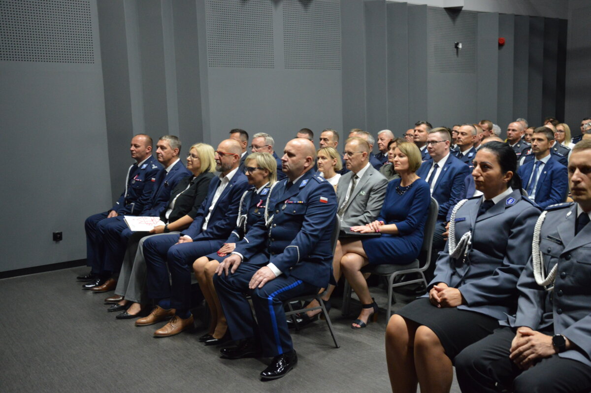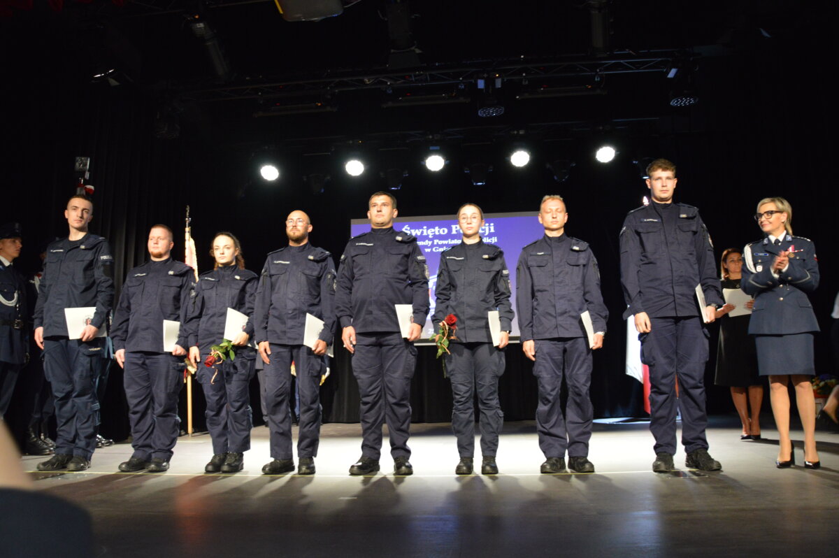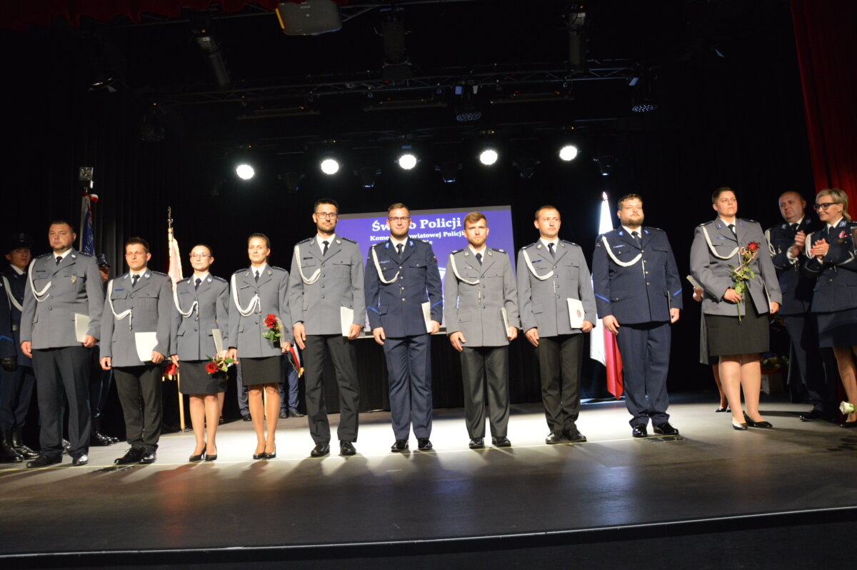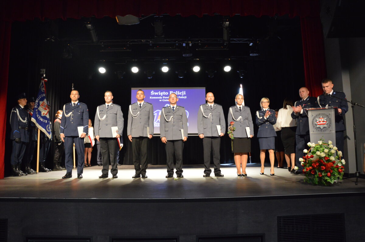 Wszystkich przybyłych powitał kom. Paweł Szafrański, który w okolicznościowym przemówieniu nawiązywał do wydarzeń z przeszłości, które ukształtowały formację, ale i do przyszłości i wyzwań, przed jakimi stają służby mundurowe. – 24 lipca 1919 roku powołano Policję Państwową i jak co roku dzień ten upamiętniamy na uroczystej zbiórce. Zebraliśmy się dzisiaj, aby uroczyście obchodzić święto gnieźnieńskiej policji – dzień, który jest szczególnie ważny dla nas wszystkich. Jest to czas, aby uhonorować ciężką pracę, poświęcenie i odwagę, które nasi funkcjonariusze wkładają w zapewnienie bezpieczeństwa i porządku publicznego. To także moment, aby przypomnieć sobie, jak istotną rolę odgrywa policja w naszym społeczeństwie – podkreślał Komendant Powiatowy Policji w Gnieźnie. – Święto Policji to wyjątkowa okazja, by nie tylko podziękować wam, drodzy policjanci i pracownicy gnieźnieńskiej komendy za niełatwą, wymagającą i odpowiedzialną służbę i pracę, ale także by przypomnieć jak ważną rolę pełnicie w społeczeństwie. Dynamicznie zmieniająca się rzeczywistość, w której żyjemy, sprawia że przed policją stawiane są wciąż nowe wyzwania. W sposób szczególny pokazały to ostatnie lata, które były dla naszej formacji wyjątkowo trudne. Podkreślić trzeba, że służba w policji wymaga wielu wyrzeczeń i umiejętności dostosowania się do nowych realiów. Jest to służba pełna poświęceń i zaangażowania, obarczona niebezpieczeństwem i ryzykiem, nawet utraty życia. Wymaga więc fachowości, odwagi, odpowiedniego przygotowania fizycznego i psychicznego. To z jednej strony stanowczość, ale z drugiej strony empatia. Policja to nie tylko siła, to także wiedza, umiejętności i doświadczenie. Policja to służba dla ludzi, która powinna działać zgodnie z zasadami humanitaryzmu i szacunku dla godności człowieka. Nie możemy zapominać, że jesteśmy po to, żeby przede wszystkim służyć naszym obywatelom – podkreślał kom. Paweł Szafrański, w kolejnych słowach składając życzenia wszystkim policjantom i pracownikom policji i dziękując wszystkim, którzy gnieźnieńską formację wspierają na co dzień.