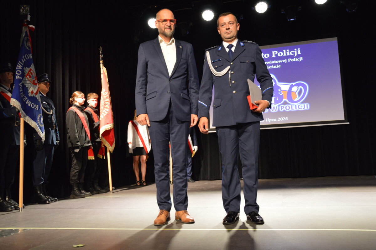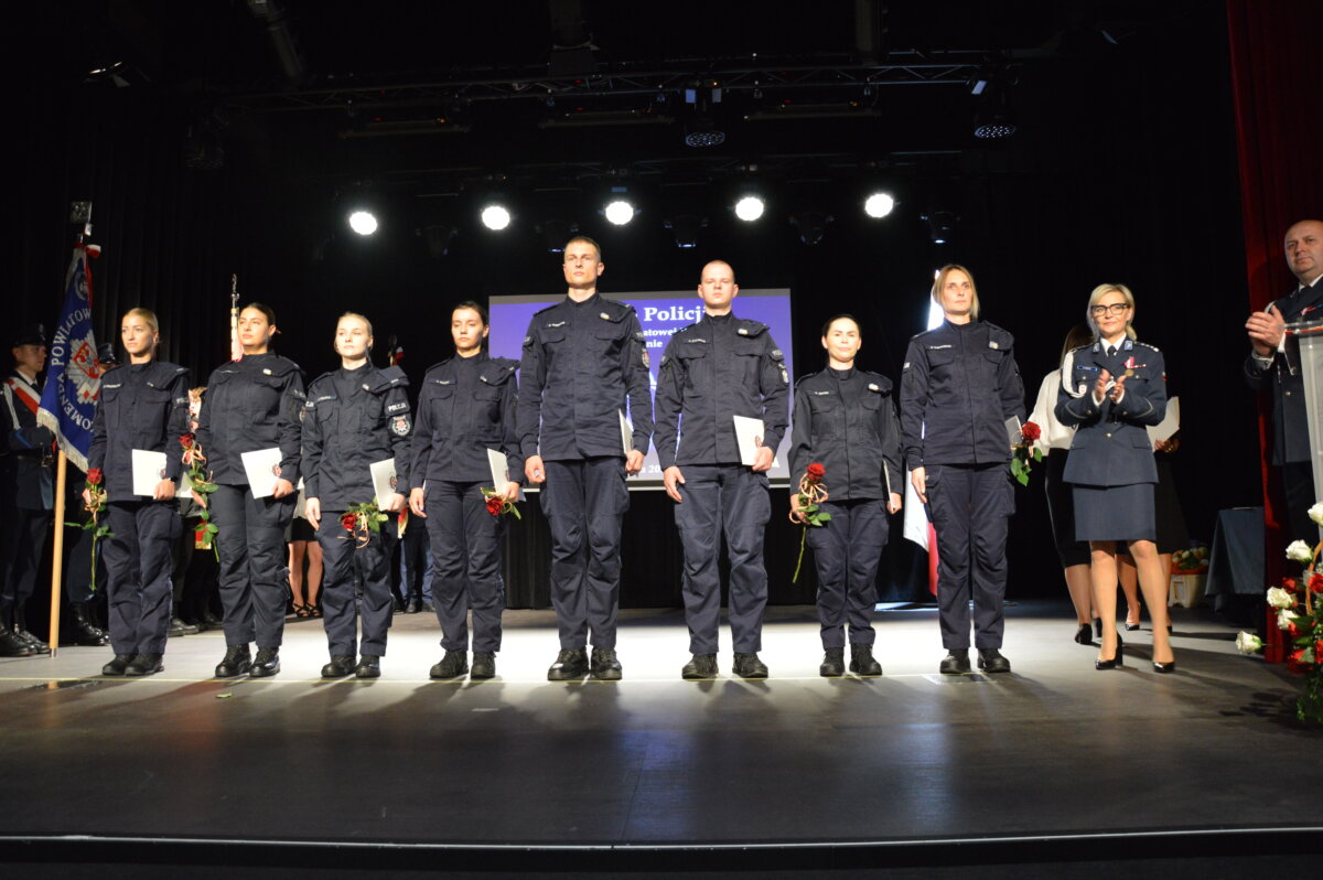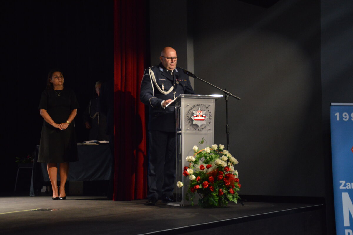 Na koniec głos zabrała zastępca Komendanta Wojewódzkiego Policji w Poznaniu, która składając wszystkim policjantom i pracownikom policji życzenia z okazji ich święta, dziękowała za pełnioną służbę. – To tu, w powiecie, rozgrywa się codzienność tej służby. To tutaj, nie na wielkich salach czy placach, podejmujecie decyzje, które chronią życie. To tutaj, w patrolach, w komisariatach, w biurach, jesteście najbliżej ludzi. Każdego dnia udowadniacie, że ta służba to nie tylko zawód, to misja. Czasem w cieniu, czasem w świetle reflektorów, ale zawsze z konsekwencją, która budzi szacunek. Dziękuję wam za to, że jesteście tam, gdzie inni boją się iść, że reagujecie, gdy inni odwracają wzrok, że chronicie, nawet gdy nie widać zagrożenia, i że wracacie, by znowu założyć mundur i zacząć od nowa – mówiła insp. Violetta Mójta, w szczególny sposób dziękując także rodzinom policjantów za cierpliwość, siłę i obecność. W swoim przemówieniu zastępca Komendanta Wojewódzkiego Policji w Poznaniu nie zapomniała również o obecnych pracownikach cywilnych policji, a także o emerytowanych funkcjonariuszach i pracownikach policji, którym także przekazała podziękowania. Uroczystą zbiórkę uświetnił krótki okolicznościowy koncert.