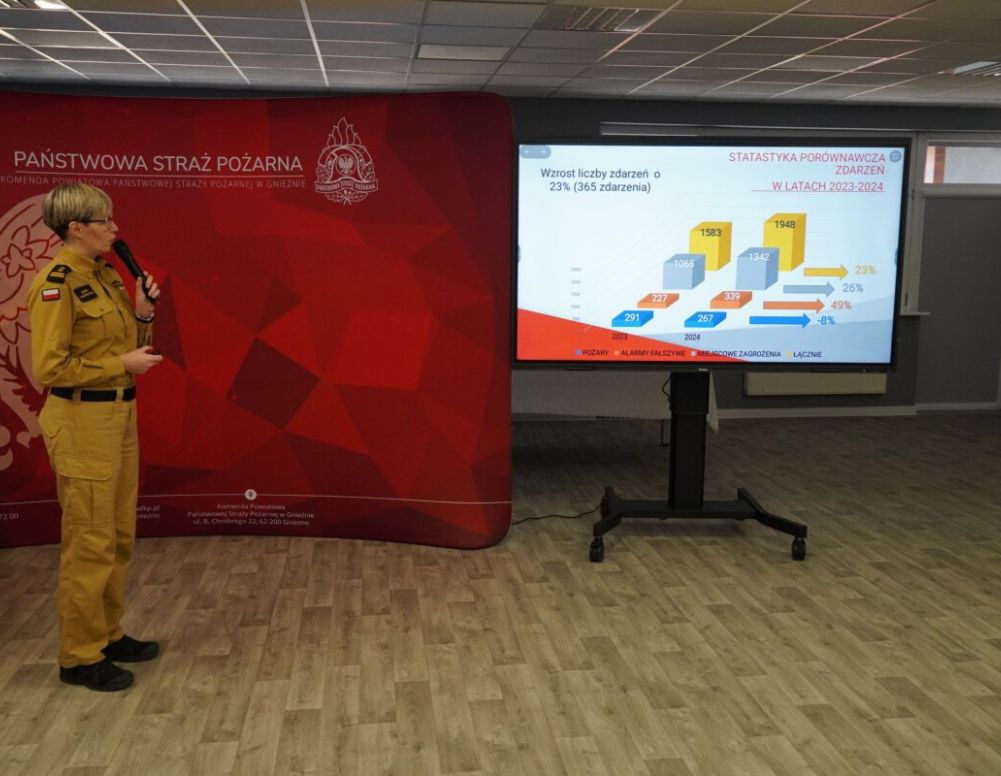 Pierwszy kwartał nowego roku to dla Państwowej Straży Pożarnej czas podsumowań minionych 12 miesięcy. Tak było w środę, 5 lutego w Komendzie Powiatowej Państwowej Straży Pożarnej w Gnieźnie. Prezentację dotyczącą wszystkich działań podejmowanych przez strażaków w minionym roku (a akcje gaśnicze to tylko część tych działań) przedstawiła bryg. Marta Kacprzycka, komendant Komendy Powiatowej Państwowej Straży Pożarnej w Gnieźnie.