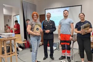 Każda z grup wzięła udział w szkoleniu składającym się z 3 spotkań, celem podniesienia wiedzy i umiejętności. Tematyka spotkań była różnorodna i prezentowała najważniejsze zagrożenia i sposoby radzenia sobie w trudnych sytuacjach i zdarzeniach medycznych, które można spotkać na co dzień. Każde spotkanie rozpoczynało się prezentacją multimedialną, która zobrazowała najważniejsze zagrożenia oraz sposoby postępowania. Następnie uczestnicy ćwiczyli zdobytą wiedzę podczas zajęć praktycznych.