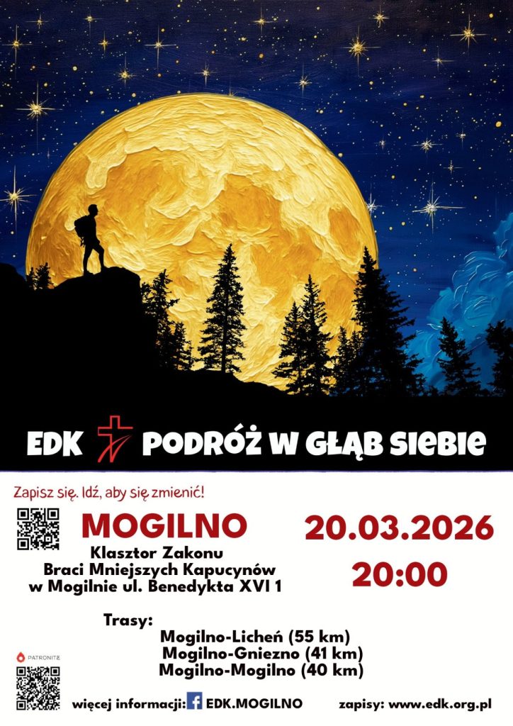 Mogileńskie EDK rozpocznie się jak zawsze mszą świętą 20 marca o godz. 20.00 w klasztorze Zakonu Braci Mniejszych Kapucynów – Wystarczy wejść na stronę www.edk.org.pl, wybrać swój rejon i trasę i …pójść w „Podróż w głąb siebie” – powiedział nam koordynator wojewódzki EDK Artur Lorczak z Mogilna.