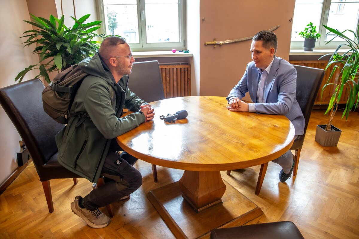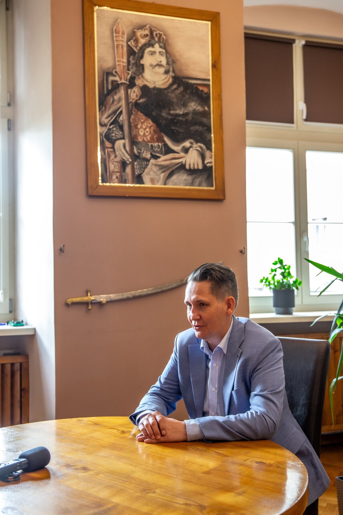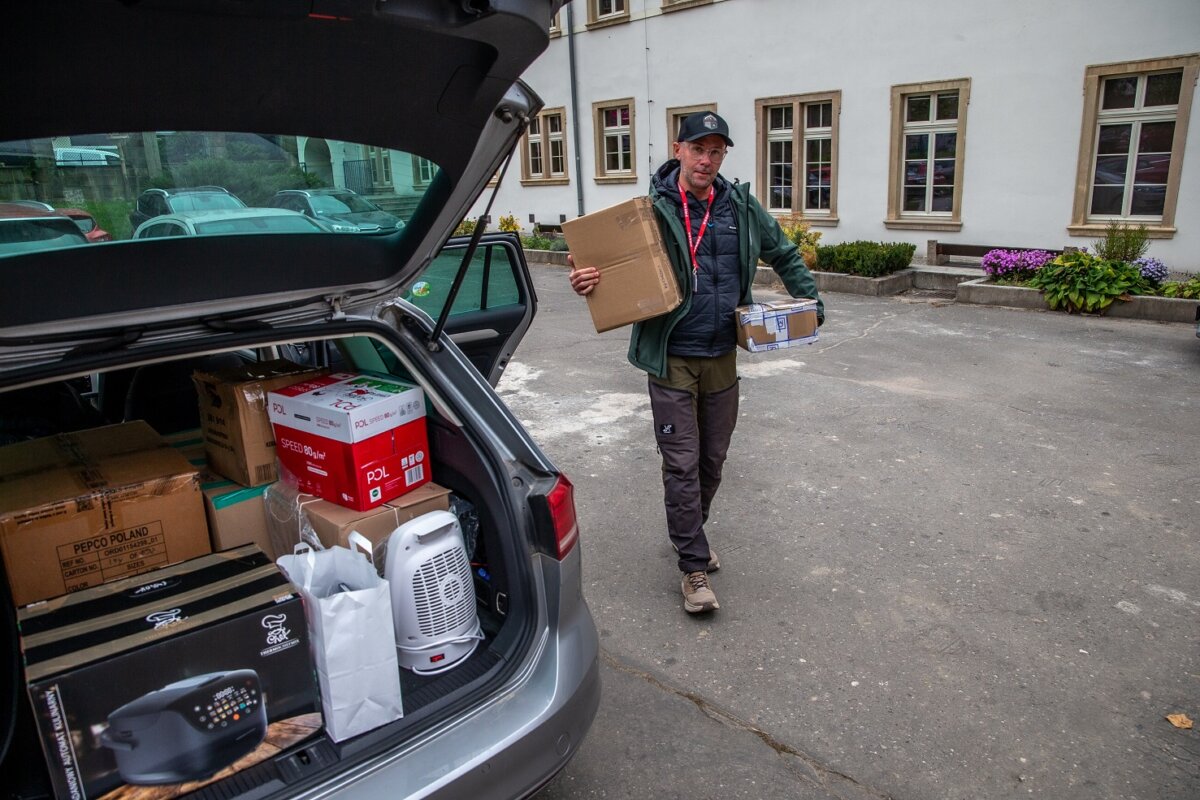 Szkoła w Kłodzku znajduje się w cudownej urody byłym budynku kolegium jezuickiego na Starym Mieście. Okazały gmach stoi tu od 1655 roku i jest jedną z architektonicznych perełek miasta. Dzięki swojemu rodowodowi, to jedna z najstarszych szkół w Polsce. Historię tego miejsca czuć dosłownie z każdego zakamarka. Porządnie utrzymany obiekt wita nas dużymi przestrzeniami korytarzy, a w oczy rzuca się wirydarz, widoczny z każdego okna. To wewnętrzny dziedziniec, na którym w pogodne dni odbywają się zajęcia lekcyjne. Obiekt posiada też piękną aulę im. Arnošta z Pardubic, Salę Tradycji i Historii Szkoły, gabinet historyczny, 3 pracownie komputerowo-informatyczne, 2 sale gimnastyczne i siłownię, galerię sztuki oraz studio filmowo-fotograficzne. Wyraźnie – dbałość o historię miesza się tu udanie z nowoczesnością. Chwilę po przybyciu witają nas pracownicy szkoły, z którymi przenosimy do magazynku przywiezione z Gniezna dary. Umawiamy się także z dyrektorem placówki, by porozmawiać z nim o potrzebach uczniów i ich rodzin, wynikłych w wyniku kataklizmu. Dyrektor zaraz zaczyna lekcję, więc udajemy się na rekonesans do niżej położonej części miasta, a po godzinie, Marcin Klimaszewski zaprasza nas już do swojego gabinetu. Od razu uprzedza on nasze pytanie, które ciśnie się na usta. Czy szkoła ucierpiała w wyniku powodzi? Jeśli chodzi o obiekty, to na całe szczęście, nie. Ale duch tej szkoły, w postaci uczniów i pracowników, z pewnością odczuł to, co wydarzyło się przed kilkoma tygodniami. Liceum bardzo intensywnie przygotowuje się do 2025 roku. Dla Gniezna i Polski to tysięczna rocznica koronacji Bolesława Chrobrego na król Polski, ale dla „Chrobrzaków” z Kłodzka to także jubileusz 80-lecia powołania do życia ich szkoły (liczonej po odzyskaniu niepodległości w 1945 r.). Jak zdradza M. Klimaszewski, trwają rozmowy, by wszystkie polskie licea im. Bolesława Chrobrego, mogły się spotkać w roku przyszłym. Ale po przywitaniu się i poznaniu historii obiektu, przechodzimy do rozmów o mniej przyjemnych rzeczach.