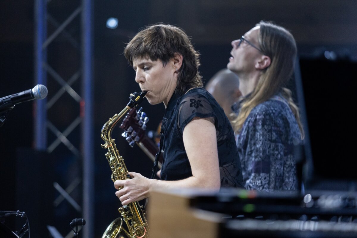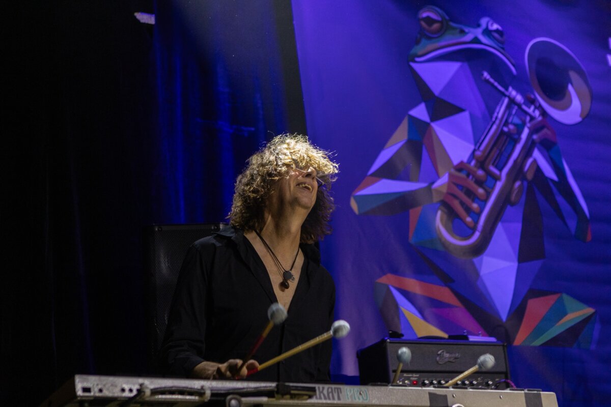 No to, by wejść głębiej w ten festiwalowy podtytuł, rozwinąłbym go tak: Jazz – Ewa Minicz, Rock – Grzegorz Minicz, Friends – cała masa osób, których to muzyczne małżeństwo otuliło przyjaźnią z rytmem muzyki pod skórą. Choć Żaba Jazz Festival to nowa inicjatywa, nie może być tutaj oczywiście mowy o „pierwszym razie”. Ewa przez lata całe budowała markę Międzynarodowego Festiwalu Jazzowego „Jazz Pod Piątką” w rodzinnym Gnieźnie, który stał się żelaznym punktem zbiórki wszystkich najważniejszych nazwisk tej muzyki w kraju i nie tylko. Grzegorz to potęga perkusji, bluesa i rockowego grania. Ogromne doświadczenie obojga i obranie za patrona swojego małżeństwa muzykę – to przepis i przepustka do zrobienia (albo kontynuowania) muzycznego wydarzenia. I zdaje się – Żaba jest udaną reinkarnacją festiwali w Gnieźnie, ale w nowym, szerszym i lepszym wydaniu. Przede wszystkim jazz jest tu mocno podbity gitarą (Napiórkowski, Anthimos), zrytmizowany wibrafonem (Maseli) i drapieżną wokalizą (Łobaszewska). Czwórka gigantów mogłaby zagrać tego wieczora w Toruniu swoje własne, potężne koncerty, ale tu – to zaleta! – musiało zadziałać zagęszczenie muzyki. Goście zagrali tylko po 3-4 utwory ze swojego repertuaru kondensując przekaz i podnosząc go do wręcz religijnej celebracji, która unosiła słuchaczy pod dach klubu. Może to wywołać protesty niektórych z nich, bo słuchać każdego z artystów marzyłoby się dłużej, ale jednodniowa forma festiwalu ma też tą zaletę, że przekrojowo możemy w ciągu 2-3 godzin obcować z różnorodną muzyką najwyższej próby.