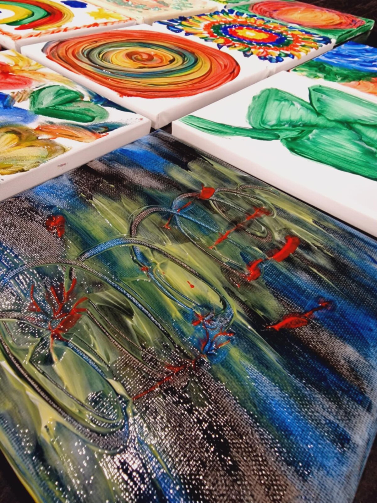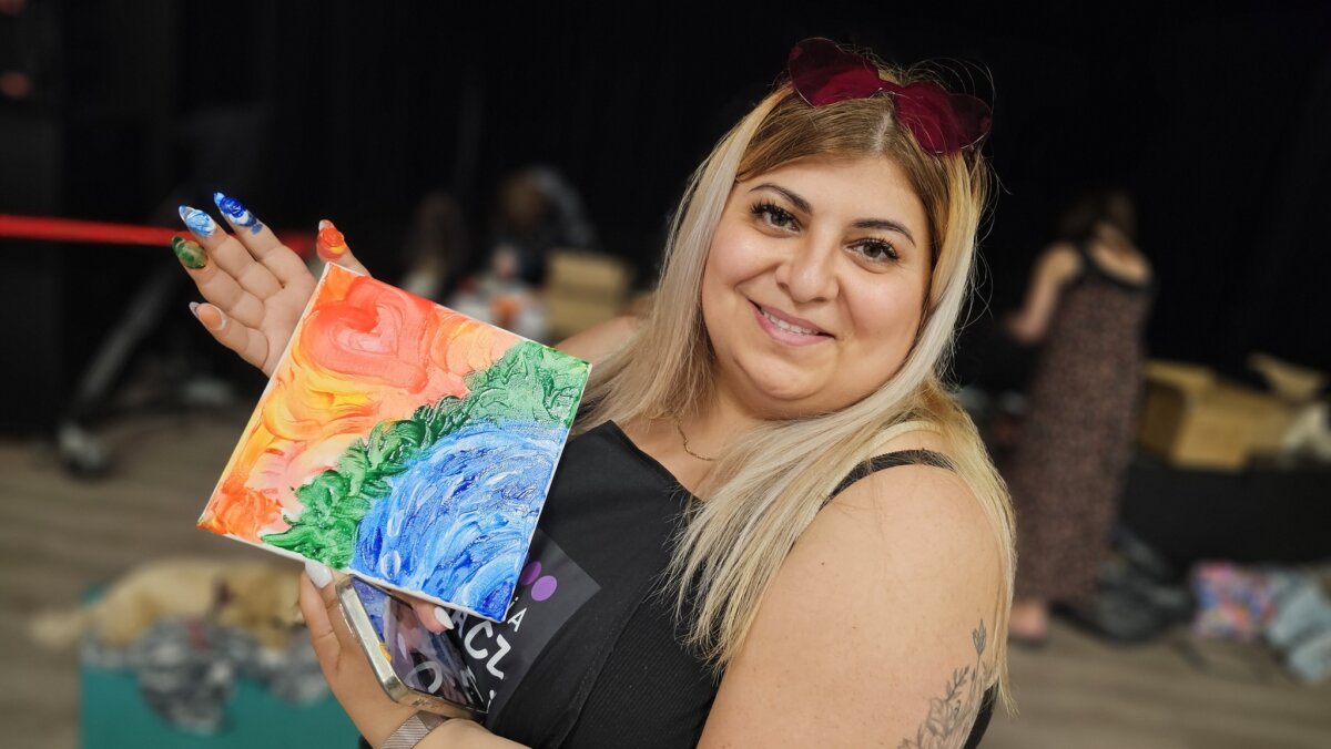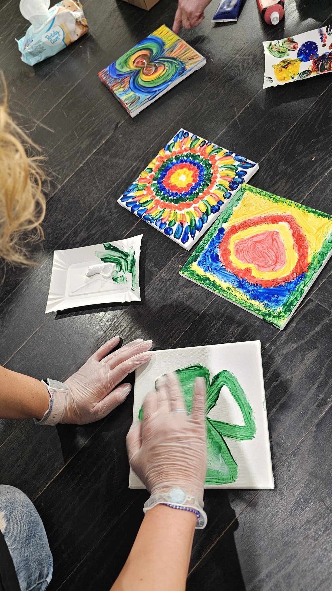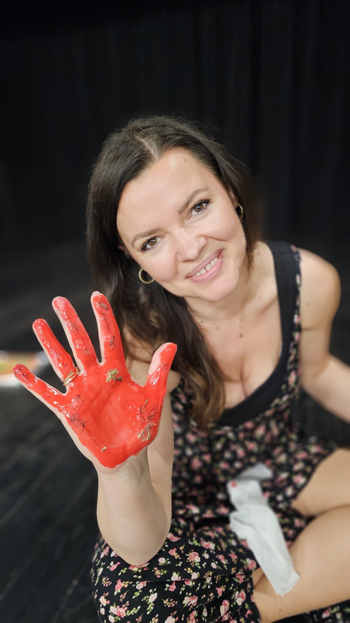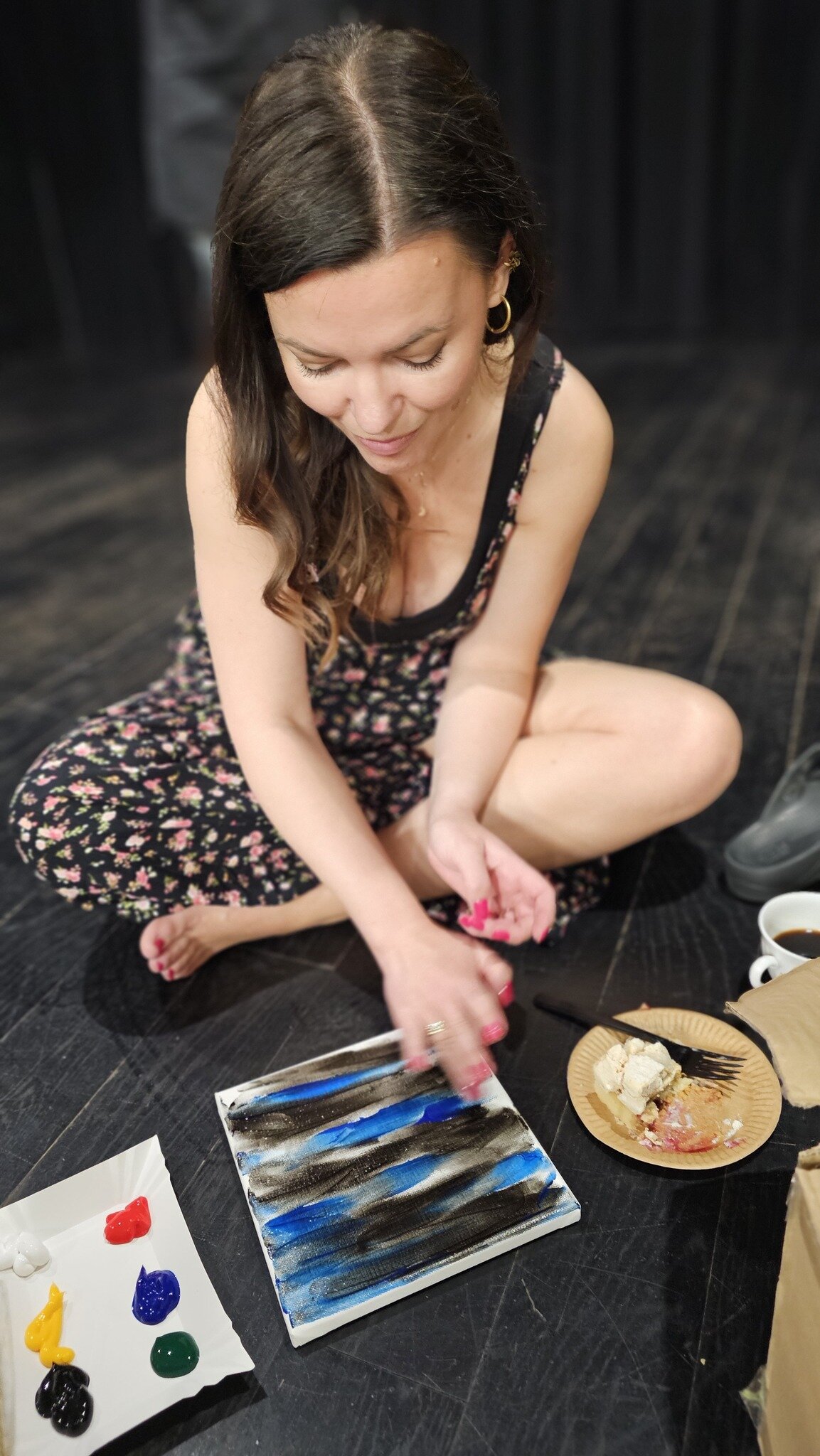 Po oddechu przyszła pora na arteterapię, którą poprowadziła Magda Rdest-Nowak. Przed uczestniczkami pojawiły się puste płótna i palety farb. Nie było instrukcji ani zasad – jedynym pytaniem było: „Gdyby Twoja dusza miała dziś kolor – jaki by był?”. Każda kobieta zanurzyła się w intuicyjne malowanie. Bez ocen, bez oczekiwań – tylko z emocjami, które same prowadziły pędzel. Niebieski – kolor oddechu i spokoju. Czerwony – symbol odwagi. Żółty – światło i nadzieja. Zielony – rozwój i proces. Czarny – głębia i początek. Biały – nowa przestrzeń. Każdy obraz stał się odciskiem duszy. Inny, osobisty, a jednak w cudowny sposób spójny z resztą. Bo arteterapia nie wymaga talentu – wystarczy gotowość, by poczuć.