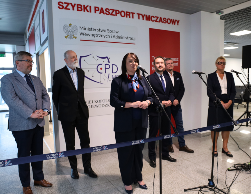 Pierwszy w Polsce punkt szybkiego wydawania paszportów tymczasowych powstał na lotnisku Chopina w Warszawie. Usługa spotkała się ogromnym zainteresowaniem podróżujących. Szybki paszport tymczasowy na okres podróży pozwolił na uratowanie wielu ważnych wyjazdów – spotkań z rodziną i bliskimi, czy podróży służbowych. Teraz podróżujący będą mogli skorzystać z tego rozwiązania na lotnisku Poznań-Ławica. W uroczystym otwarciu uczestniczył wiceminister spraw wewnętrznych i administracji Tomasz Szymański, I wicewojewoda wielkopolska Karolina Fabiś-Szulc oraz wiceprezeska zarządu Portu Lotniczego Poznań-Ławica sp. z o.o. im. Henryka Wieniawskiego Agnieszka Szymankiewicz.