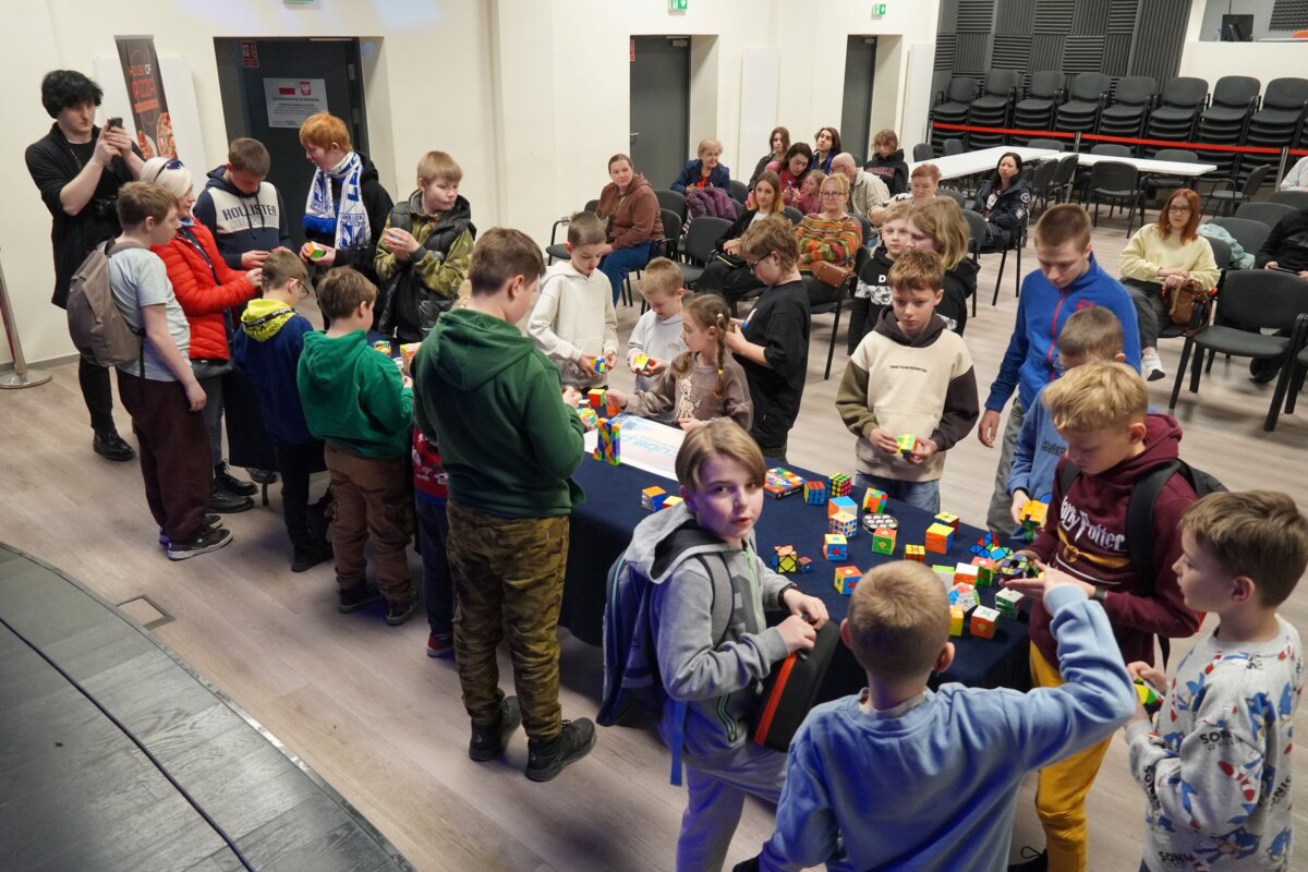 Gnieźnieńskie Stowarzyszenie Kostki Rubika wspólnie z Centrum Kultury „Scena to dziwna” zaprosiło w sobotę, 12 kwietnia na wyjątkowe wydarzenie, a mianowicie na Układ Chrobrego – wspólne układanie portretu pierwszego króla z… kostek Rubika. Czy można zbudować obraz z kostki Rubika? Z jednej niekonieczne, ale już z tysiąca jak najbardziej. Skąd pomysł na właśnie taką mozaikę ułożoną z popularnych na całym świecie sześcianów? – Mamy w Gnieźnie niezwykłą rocznicę, tysiąclecie koronacji pierwszych królów Polski. Jako Gnieźnieńskie Stowarzyszenie Kostki Rubika postanowiliśmy także dołożyć do tych obchodów coś od siebie, jako pasjonaci kostki Rubika. Pomyśleliśmy, że zrobimy portret Bolesława Chrobrego z tysiąca kostek Rubika. Każda kostka jest wymieszana w określony sposób, który przygotował dla nas komputer. Jednak to my już na żywo, musieliśmy doprowadzić te kostki do takiego stanu, żeby to wszystko złożyło się w całość. Cieszy nas, że w układanie włączają się nasi uczniowie, osoby młode i starsze, pasjonaci kostki i nowicjusze – powiedział Michał Wachowiak z Gnieźnieńskiego Stowarzyszenia Kostki Rubika.