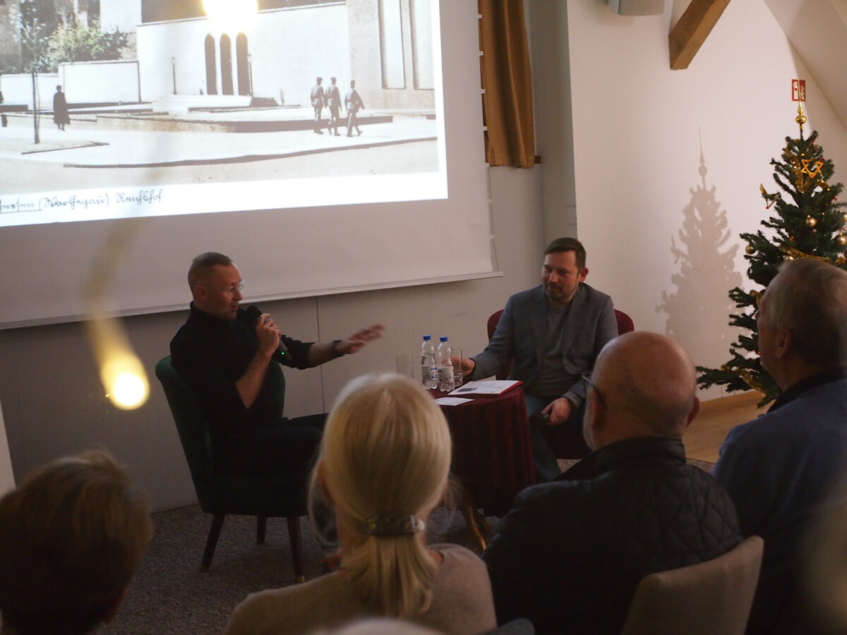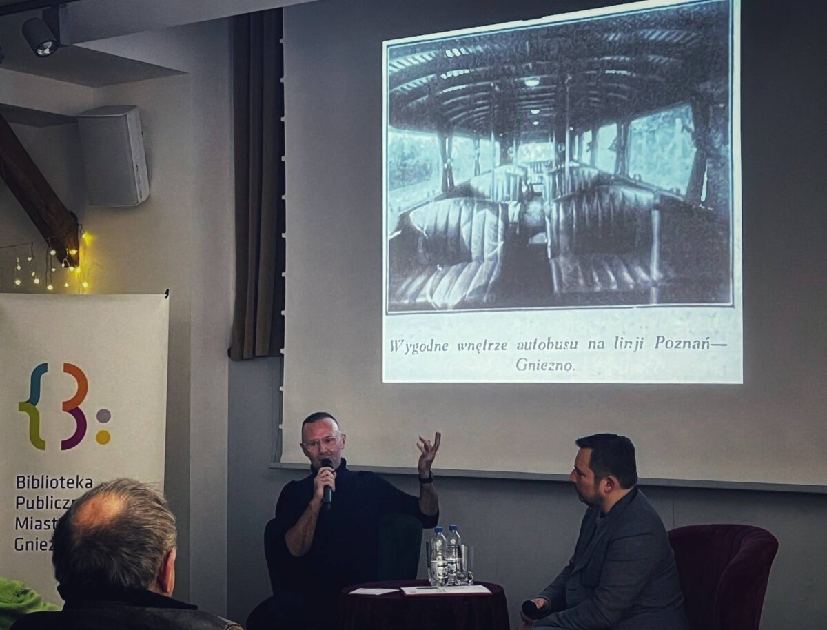 20 grudnia w Starym Ratuszu, na zaproszenie Biblioteki Publicznej Miasta Gniezna odbyło się spotkanie autorskie z Aleksandrem Karwowskim, które bardzo ciekawie i wielopoziomowo poprowadził Dawid Jung – poeta, wydawca, dziennikarz – jedna z najważniejszych postaci kultury współczesnego Gniezna. Dyskusja obu zakochanych w historii rozmówców, przy wypełnionej słuchaczami sali była rozmową o pamięci, fascynacji i zdolności do przystanięcia w codziennym biegu. Do przyjrzenia się rzeczom, miejscom i ludziom, których już nie ma, a które budowały i opowiadały o nich poprzednie pokolenia gnieźnian. Jak ocenił Dawid Jung po lekturze książki, autor wykazuje cechy archeologa pamięci. Wydobywa z dziejów miasta, zapisków archiwalnych gazet informacje, które z pozoru ich nieznaczności, najtrafniej i najbliżej opowiadają jednak tę bliskość miasta. Tu właśnie znajduje się ta zawarta w podtytule książki „alternatywa”. Można historię opowiadać datami i wielkimi wydarzeniami z dziejów Gniezna (co jest czynione), ale można też podejść do niej bardziej „swojsko”, opowiadając o życiu powszednim gnieźnian, głównie z przełomu XIX i XX wieku. Bo właśnie zdaje się, że ten okres dziejów Gniezna A. Karwowskiemu jest najbliższy. Zresztą jak sam wspomniał, historia tego przełomu wieków jest nam najbliższa i żywa, bo znamy ją jeszcze z opowiadań naszych mam, babć i pradziadków.