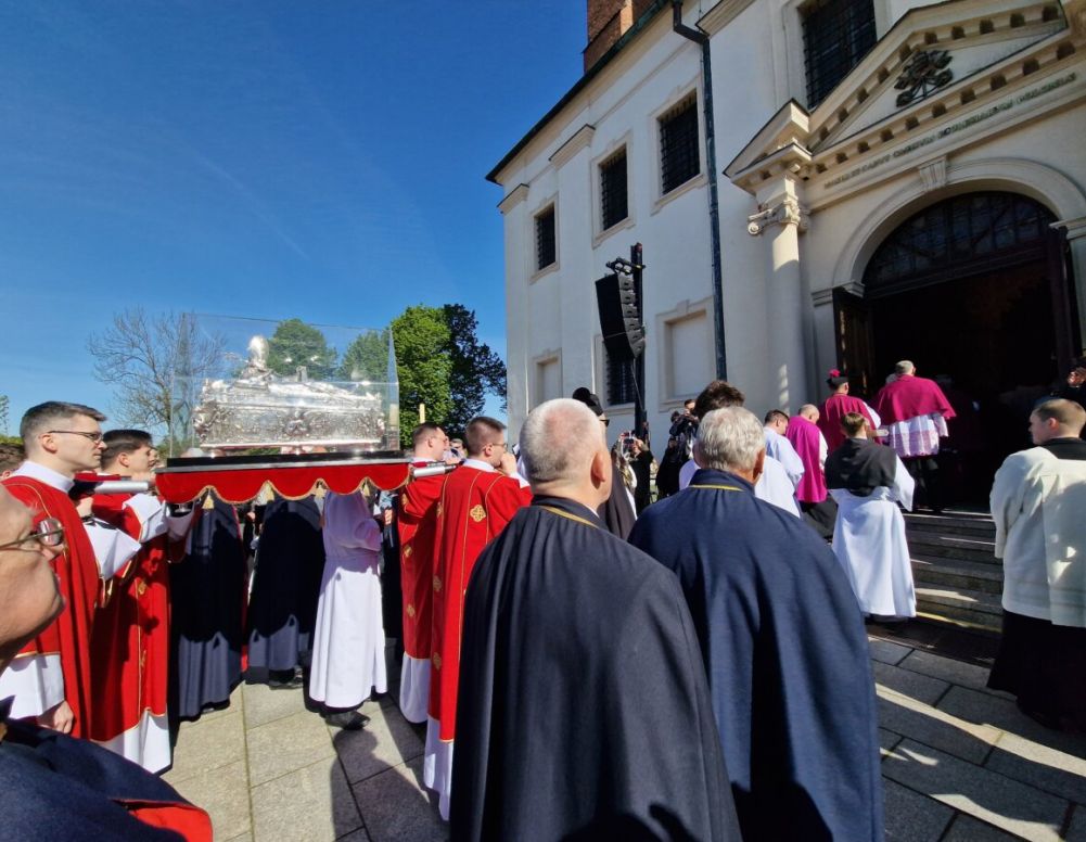 W niedzielę, 27 kwietnia o godzinie 9:15 uroczysta procesja z relikwiami wyruszyła ze Wzgórza Zbarskiego w kierunku katedry. W tym roku, ze względu na rocznicę koronacji królewskich, uroczysta msza święta odpustowa celebrowana była w bazylice prymasowskiej, a nie – jak zazwyczaj – na placu św. Wojciecha. W uroczystościach kościelnych uczestniczyli licznie zgromadzeni wierni, wśród nich: przedstawiciele duchowieństwa, przedstawiciele władz państwowych i samorządowych: wojewódzkich, powiatowych i miejskich, członkowie różnych organizacji, bractw i stowarzyszeń, przedstawiciele służb mundurowych, harcerze, pielgrzymi i in. Przybyłych do bazyliki prymasowskiej powitał abp Wojciech Polak. – Tegoroczne uroczystości świętowojciechowe od samego początku miały mieć szczególny charakter. Chcieliśmy bowiem, aby stały się okazją do naszego dziękczynienia za wiekopomne wydarzenie sprzed tysiąca lat, jakim była koronacja Bolesława Chrobrego, a następnie jego syna – Mieszka II Lamberta na królów Polski. Cieszę się, że po piątkowym posiedzeniu Sejmu i Senatu, w obecności Pana Prezydenta RP, które odbyło się w Gnieźnie, możemy teraz spotkać się w miejscu, w którym to wszystko się wydarzyło: w bazylice prymasowskiej, w auli koronacyjnej królów Polski. W te ogólnopolskie uroczystości chcieliśmy włączyć również naszą wdzięczność za 1025 lat istnienia archidiecezji gnieźnieńskiej, która została ustanowiona w czasie pamiętnego Zjazdu Gnieźnieńskiego – mówił Prymas Polski, w kolejnych słowach nawiązując także do śmierci papieża Franciszka. – Wydarzenia z ostatnich dni w naturalny sposób skłaniają nas do jeszcze jednej, niezwykle ważnej intencji, która towarzyszyć będzie naszej modlitwie. Chcemy przecież dziękować Panu Bogu za dar życia i pasterskiej posługi papieża Franciszka i jednocześnie prosić w ten dzień, za kościół święty, powierzając nas w opiece świętego Wojciecha i przyzywając Ducha Świętego, by prowadził w najbliższych dniach kolegium kardynałów – mówił abp Wojciech Polak na chwilę przed rozpoczęciem nabożeństwa.