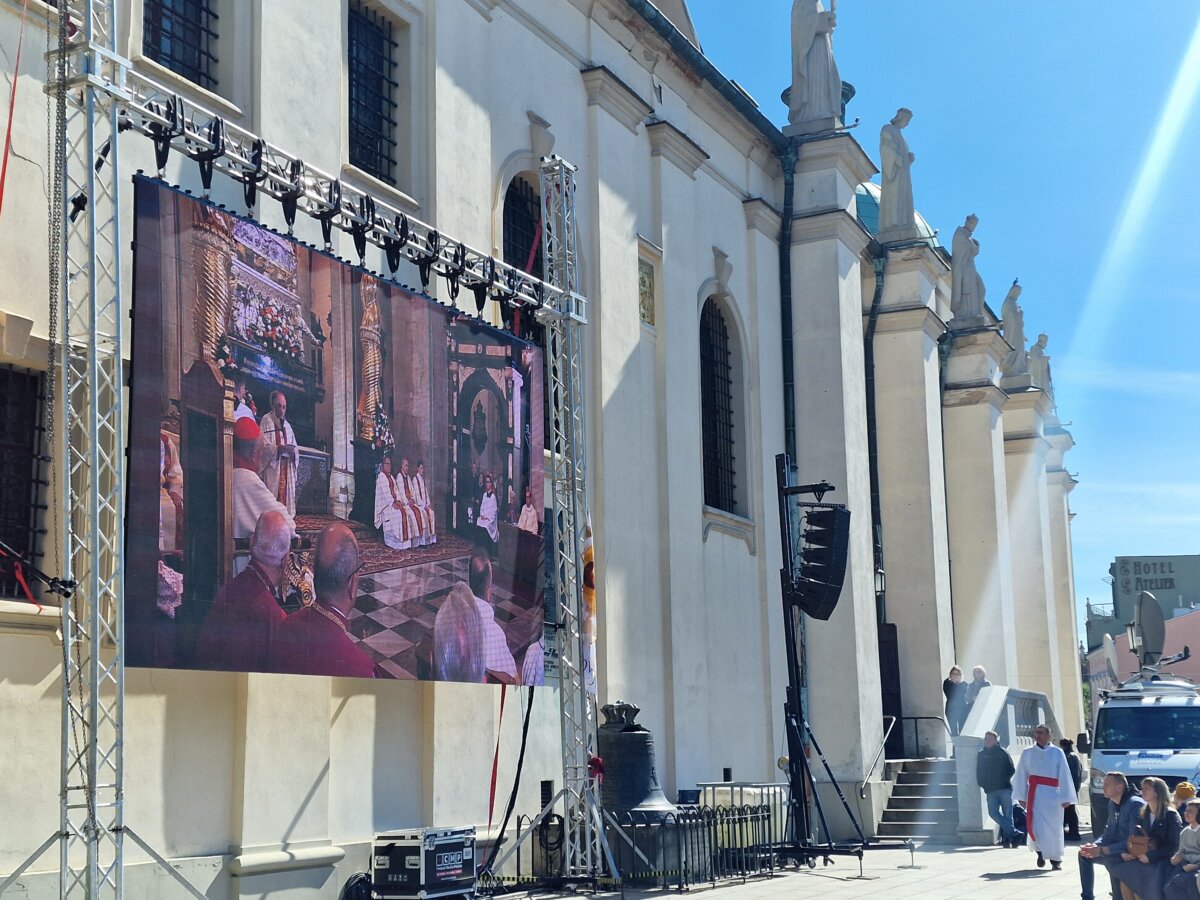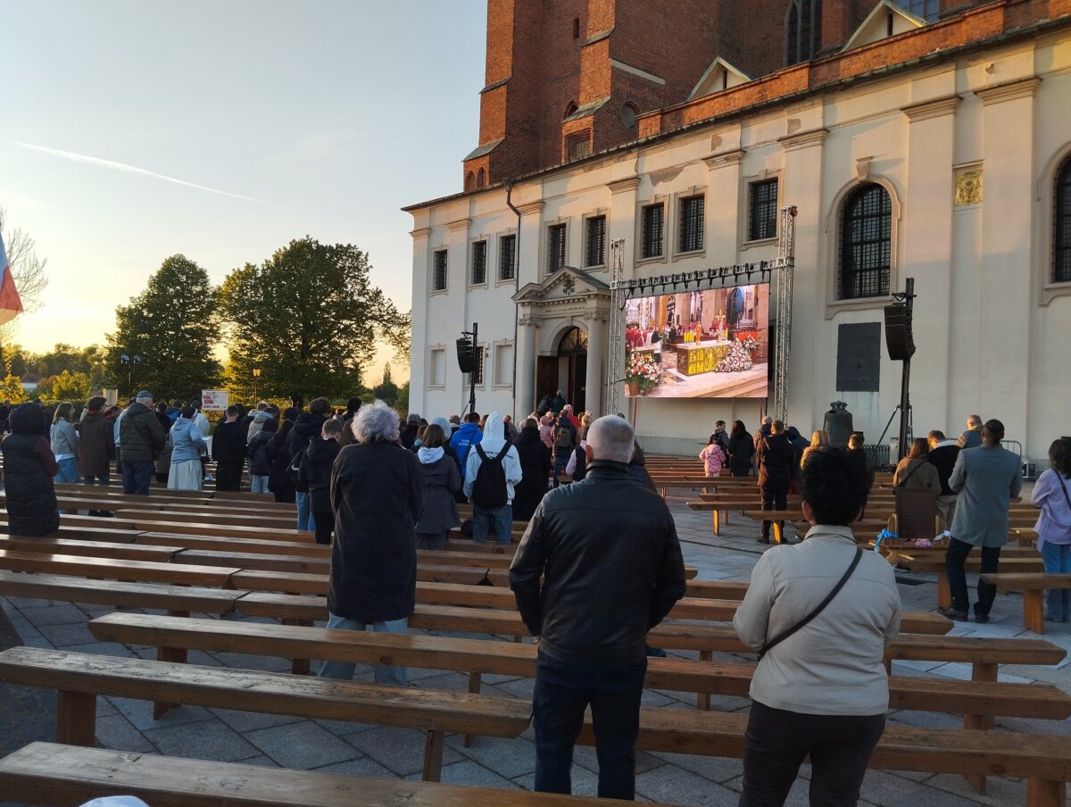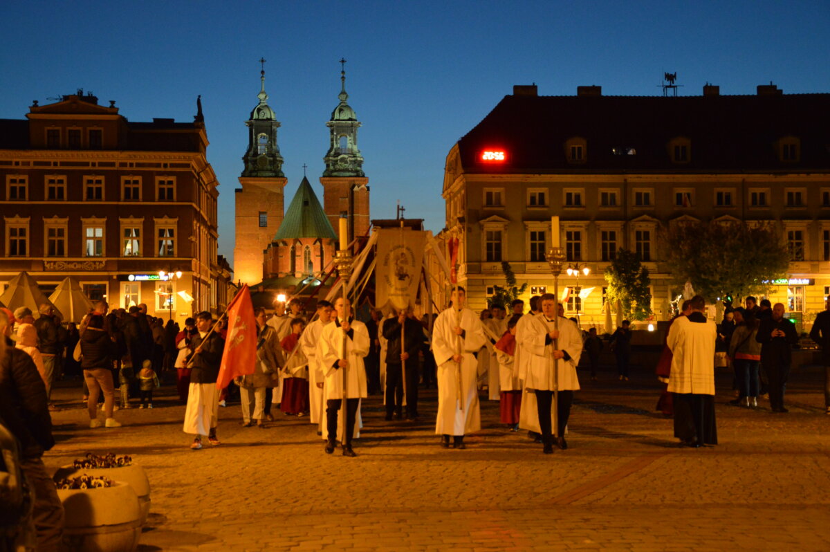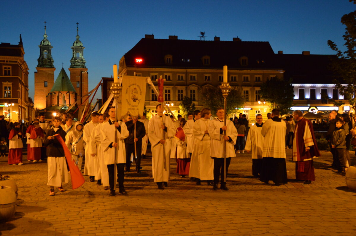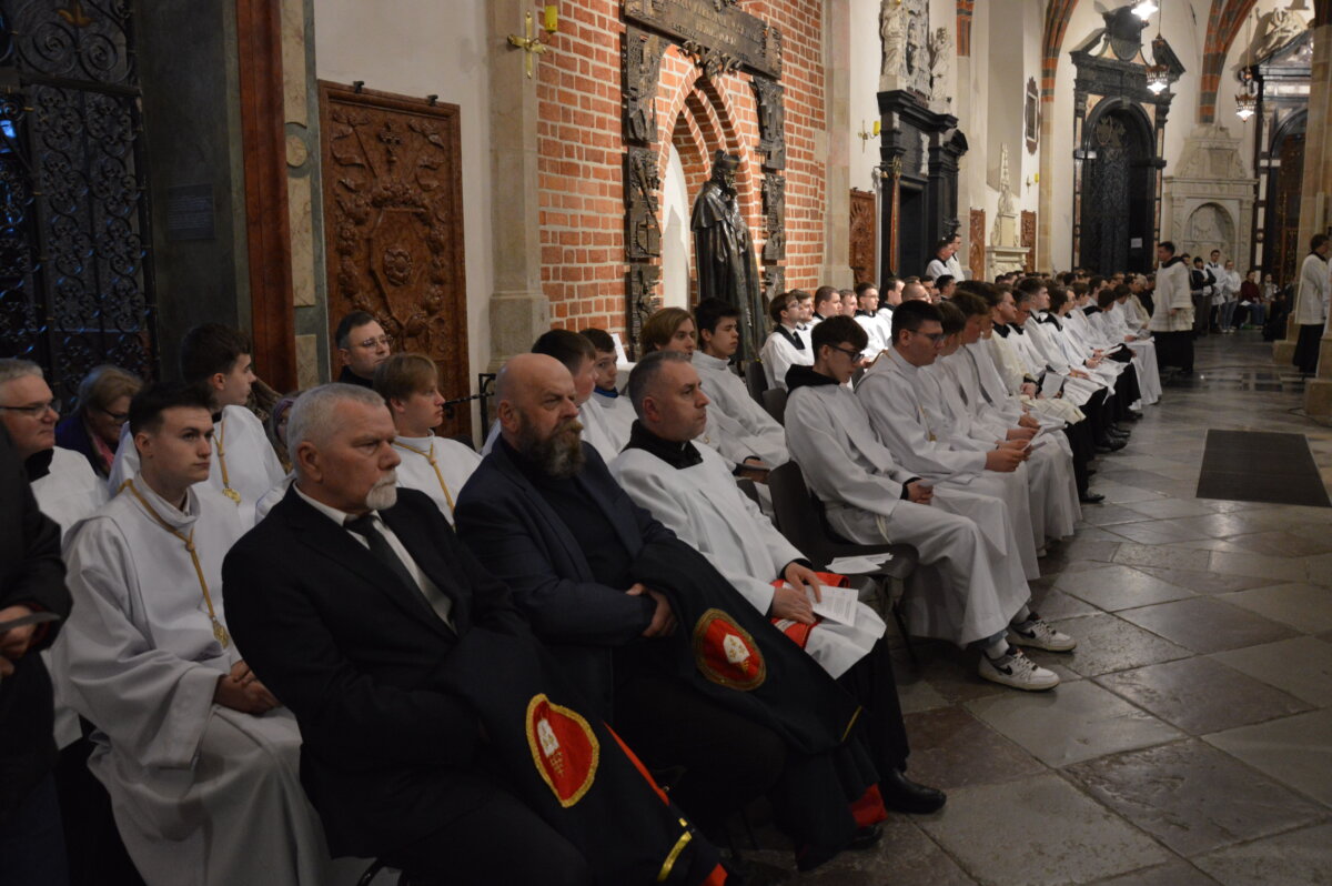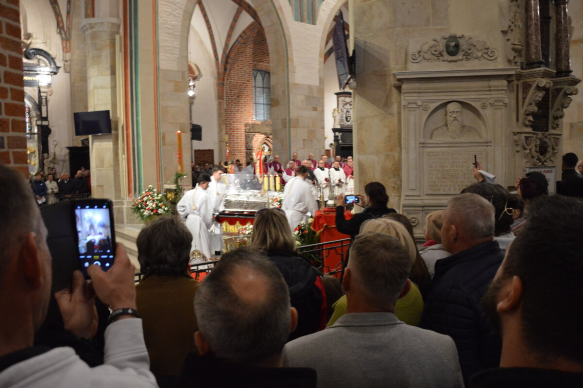W niedzielę, 27 kwietnia o godzinie 9:15 uroczysta procesja z relikwiami wyruszyła ze Wzgórza Zbarskiego w kierunku katedry. W tym roku, ze względu na rocznicę koronacji królewskich, uroczysta msza święta odpustowa celebrowana była w bazylice prymasowskiej, a nie – jak zazwyczaj – na placu św. Wojciecha. W uroczystościach kościelnych uczestniczyli licznie zgromadzeni wierni, wśród nich: przedstawiciele duchowieństwa, przedstawiciele władz państwowych i samorządowych: wojewódzkich, powiatowych i miejskich, członkowie różnych organizacji, bractw i stowarzyszeń, przedstawiciele służb mundurowych, harcerze, pielgrzymi i in. Przybyłych do bazyliki prymasowskiej powitał abp Wojciech Polak. – Tegoroczne uroczystości świętowojciechowe od samego początku miały mieć szczególny charakter. Chcieliśmy bowiem, aby stały się okazją do naszego dziękczynienia za wiekopomne wydarzenie sprzed tysiąca lat, jakim była koronacja Bolesława Chrobrego, a następnie jego syna – Mieszka II Lamberta na królów Polski. Cieszę się, że po piątkowym posiedzeniu Sejmu i Senatu, w obecności Pana Prezydenta RP, które odbyło się w Gnieźnie, możemy teraz spotkać się w miejscu, w którym to wszystko się wydarzyło: w bazylice prymasowskiej, w auli koronacyjnej królów Polski. W te ogólnopolskie uroczystości chcieliśmy włączyć również naszą wdzięczność za 1025 lat istnienia archidiecezji gnieźnieńskiej, która została ustanowiona w czasie pamiętnego Zjazdu Gnieźnieńskiego – mówił Prymas Polski, w kolejnych słowach nawiązując także do śmierci papieża Franciszka. – Wydarzenia z ostatnich dni w naturalny sposób skłaniają nas do jeszcze jednej, niezwykle ważnej intencji, która towarzyszyć będzie naszej modlitwie. Chcemy przecież dziękować Panu Bogu za dar życia i pasterskiej posługi papieża Franciszka i jednocześnie prosić w ten dzień, za kościół święty, powierzając nas w opiece świętego Wojciecha i przyzywając Ducha Świętego, by prowadził w najbliższych dniach kolegium kardynałów – mówił abp Wojciech Polak na chwilę przed rozpoczęciem nabożeństwa.