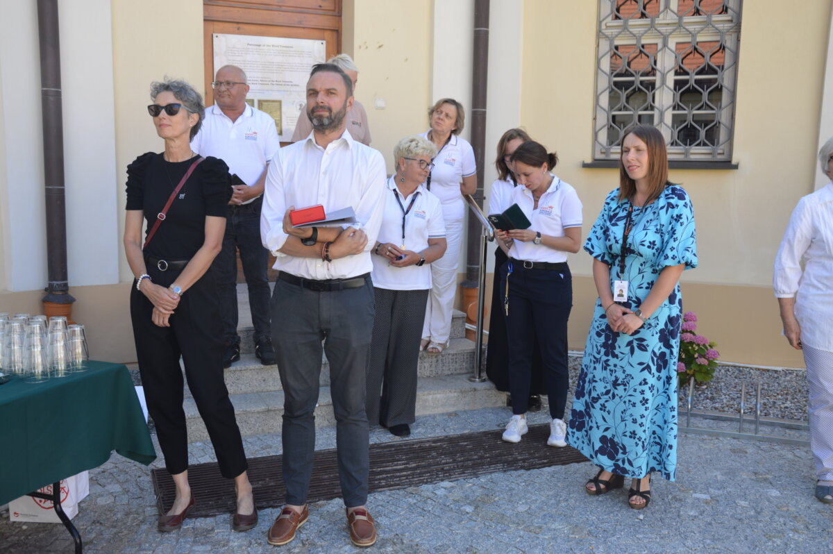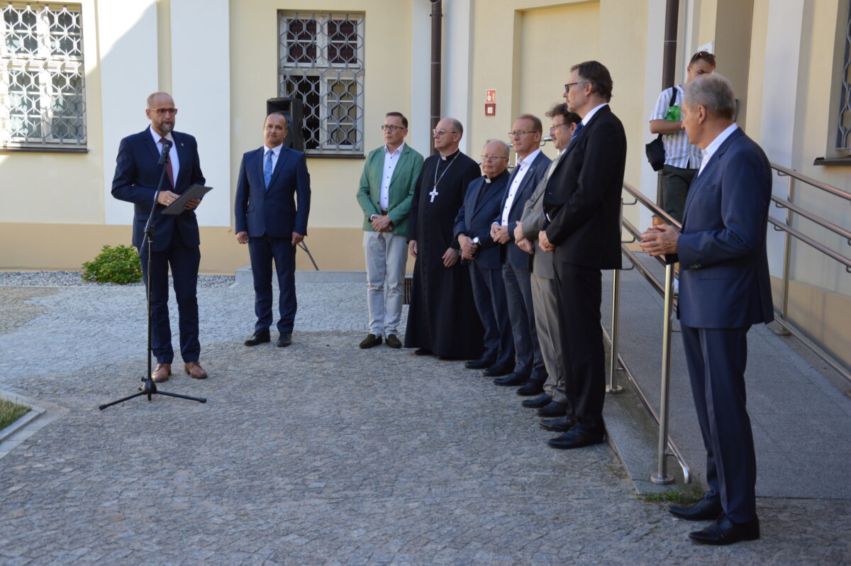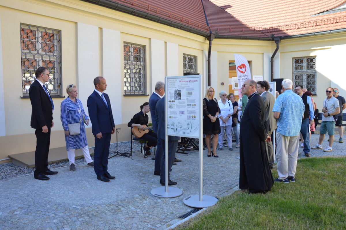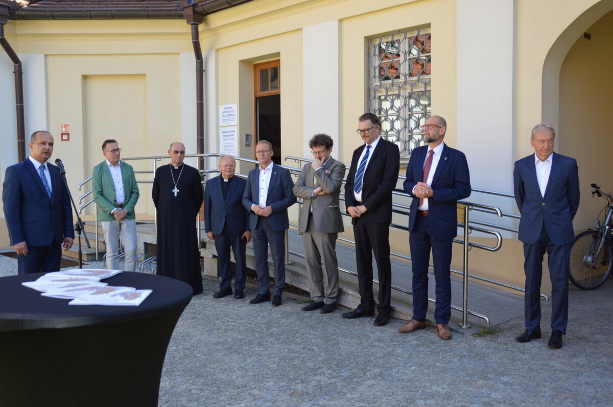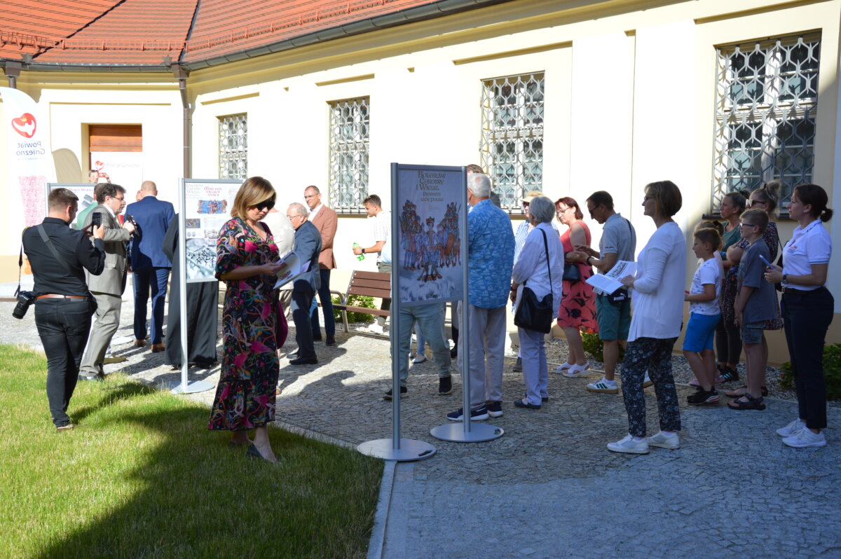 Wernisaż wystawy zewnętrznej, prezentowanej na dziedzińcu Muzeum Archidiecezji Gnieźnieńskiej, odbył się w poniedziałek, 30 czerwca. Symbolicznego otwarcia dokonali starosta Tomasz Budasz, dyrektor Bartosz Przybyła i abp Wojciech Polak. Prymas Polski podkreślał, że bardzo ważne jest umacnianie pamięci o przeszłości, by z nadzieją móc spoglądać w przyszłość. – Bardzo się cieszę, że w Gnieźnie, z okazji tych wielkich rocznic, nawiązała się swoista sztafeta. Kiedy obchodziliśmy 1050 – lecie chrztu Polski we współpracy z Narodowym Bankiem Polskim Archidiecezja Gnieźnieńska wydawała bardzo piękny banknot, który przedstawiał m.in. katedrę, miejsce chrztu Polski. I muszę powiedzieć, że ta współpraca była bardzo piękna. Teraz, z okazji 1000 – lecia koronacji Bolesława Chrobrego widzimy, że tę pałeczkę w sztafecie przejmuje Starostwo Powiatowe w Gnieźnie we współpracy z państwem i jednocześnie naszym muzeum, które pragnie właśnie w ten sposób, udostępniając swoje przestrzenie pokazywać to, co było dziedzictwem wielkiego geniuszu Bolesława Chrobrego, który w ten sposób bijąc monety nie tylko wpisywał się w poczet władców Europy, ale także pokazywał w ten sposób swoje imię i siebie jako władcę – mówił abp Wojciech Polak. – Nie byłoby narodzin królestwa polskiego, nie byłoby korony królewskiej na głowie Bolesława Chrobrego w Gnieźnie, gdyby wcześniej Mieszko I nie przyjął chrztu i gdyby Bolesław Chrobry nie przyjął ciała męczennika, świętego Wojciecha tu, w Gnieźnie, do którego w roku 1000 przybył cesarz Otton III. Stąd pierwsze uznanie Chrobrego, które miało miejsce za czasów Zjazdu Gnieźnieńskiego i cesarza Ottona III. Nawet Gall Anonim pisze o tym symbolicznym nałożeniu diademu cesarskiego na głowę Bolesława Chrobrego, które zostało potem zwieńczone prawdziwą koroną, którą otrzymał nasz władca w roku 1025. Jest to pewnego rodzaju sekwencja dziejów i myślę, że trzeba widzieć to wszystko jako wielki znak bożej opatrzności, który w ten sposób otrzymujemy po przeszło 1000 latach. Niech to spotkanie z historią nas umacnia i prowadzi ku przyszłości – podkreślał Prymas Polski.