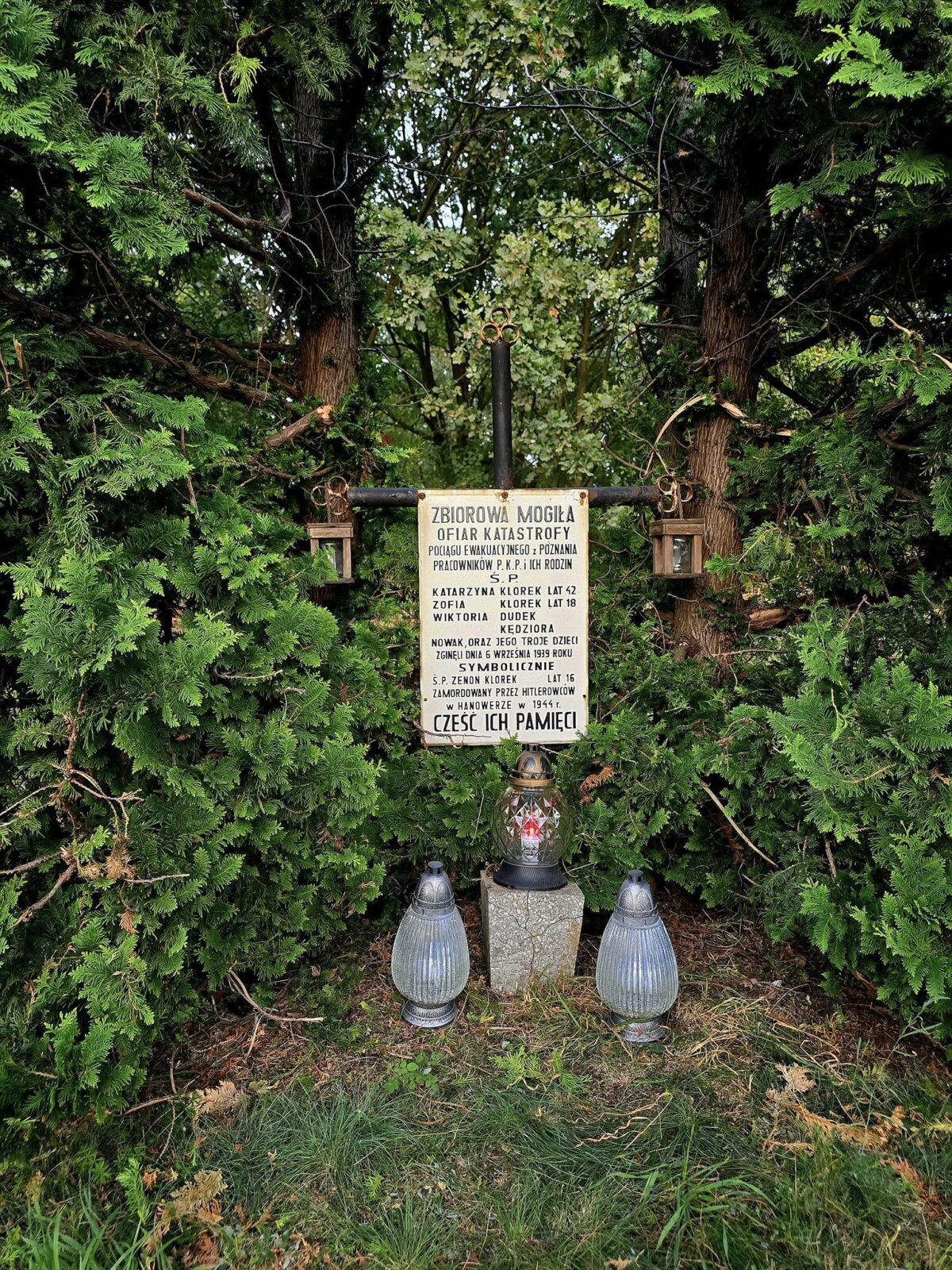 Między Gnieznem a Gębarzewem, na skraju lasu przy nasypie kolejowym, znajduje się zbiorowa mogiła kilku osób – „ofiar katastrofy pociągu ewakuacyjnego z Poznania, pracowników PKP i ich rodzin”. Zgodnie z zapisem na tablicy, w grobie tym spoczywają: „Katarzyna Klorek – lat 42, Zofia Klorek – lat 18, Wiktoria Dudek, Kędziora, Nowak oraz jego troje dzieci”, którzy zginęli 6 września 1939 roku. Symbolicznie miejsce to upamiętnia również sylwetkę Zenona Klorka – lat 16, który został „zamordowany przez hitlerowców Hanowerze w 1944 roku”.