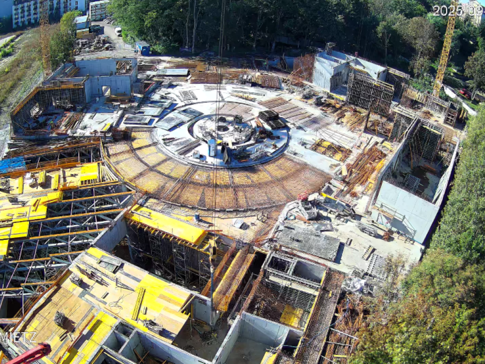 Prace budowlane zaplanowane do końca 4. kwartału 2025 obejmą zamknięcie stropu „0” i wykonanie izolacji przeciwwilgociowej, kontynuację konstrukcji części nadziemnych budynków B, C i D, rozpoczęcie wykonywania posadzek na poziomie -2, kontynuację wykonywania instalacji wentylacyjnej w części podziemnej. Do końca roku widoczne będą już zatem znane z wizualizacji cztery nadziemne budynki, w których znajdą się magazyny, pracownie konserwatorskie, sale konferencyjne i edukacyjne, pomieszczenia wystawy czasowej i część biurowa. Budynki te, zgodnie z projektem, będą obłożone płytami z naturalnego kamienia. Ich montaż rozpocznie się jeszcze w tym roku.