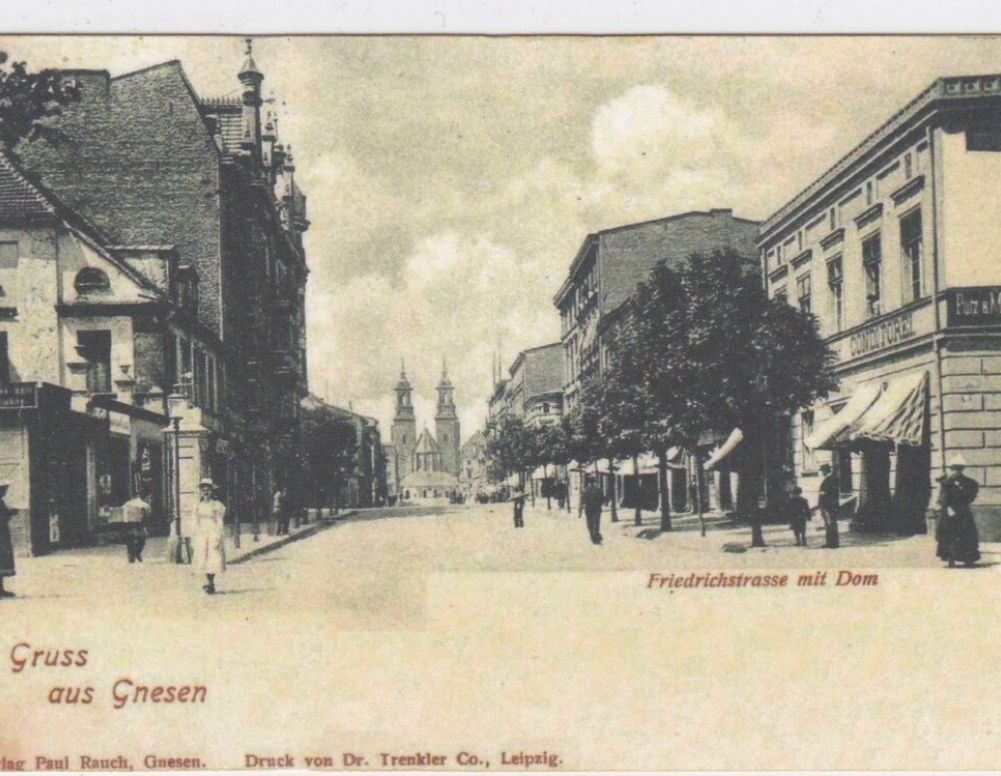 Warto zwrócić uwagę na latarnię uliczną oraz markizy – tak charakterystyczne przez dziesiątki lat dla gnieźnieńskiej „Kareji”.