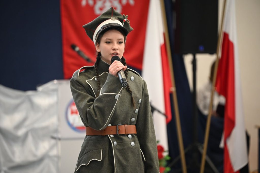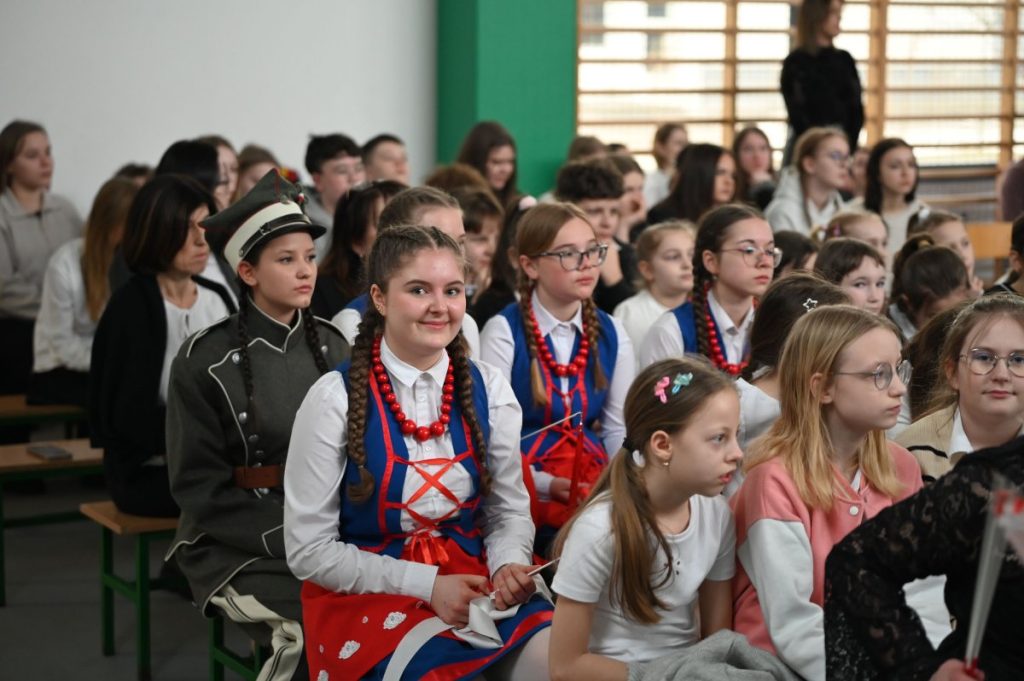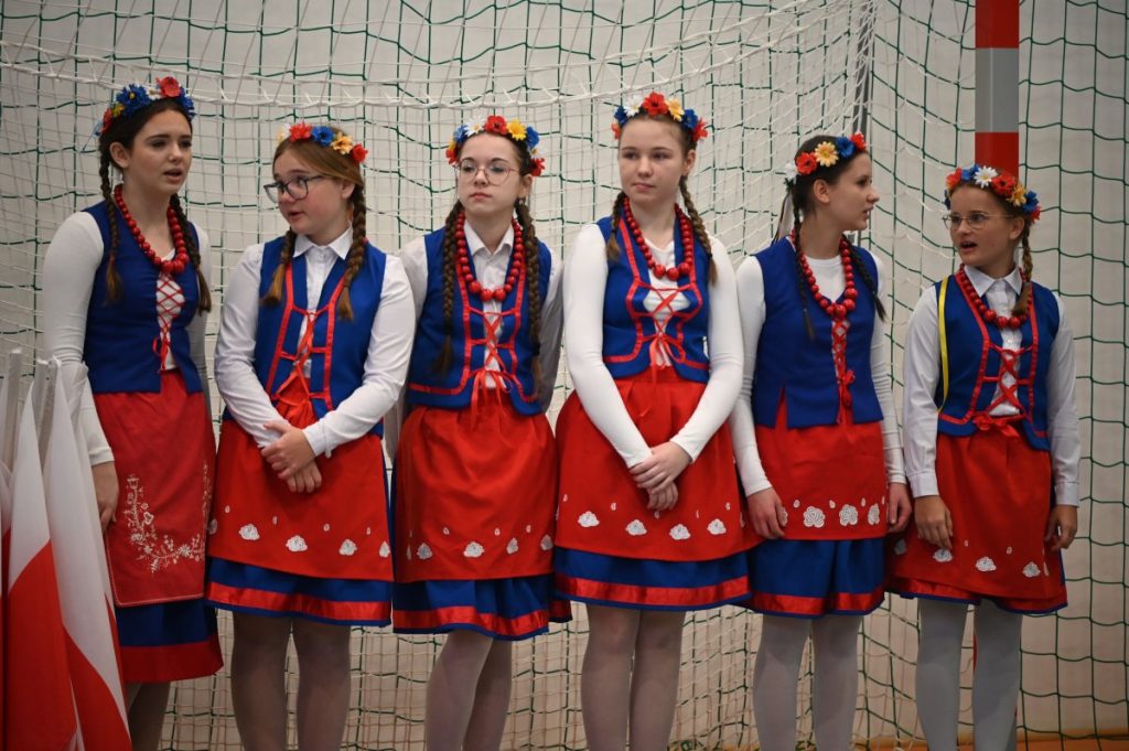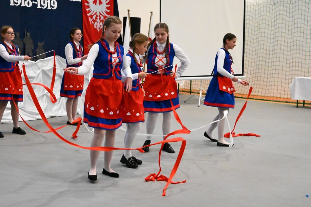 W części artystycznej wystąpili uczniowie: Maja Derenda (kl. VI), która wykonała własną piosenkę o powstaniu, nagrodzoną 3. miejscem w konkursie Mój sposób na pamięć o Powstaniu Wielkopolskim i Nikola Chudy (kl. VIII), w mundurze Szwadronu Nadgoplańskiego, zaprezentowała autorski wiersz, za który zdobyła 2. miejsce w Powiatowym Konkursie Recytatorskim w Szczepanowie.