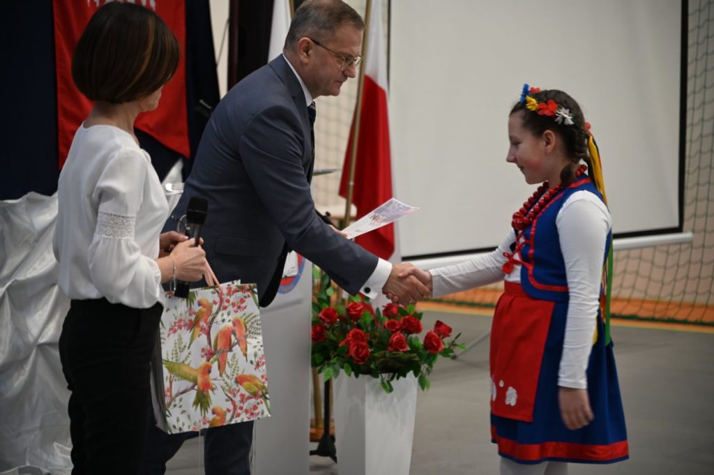 Podczas uroczystości podsumowane zostały zorganizowane w szkole konkursy wiedzy i plastyczny z okazji rocznicy wybuchu Powstania Wielkopolskiego i wręczenie nagród ich laureatom.