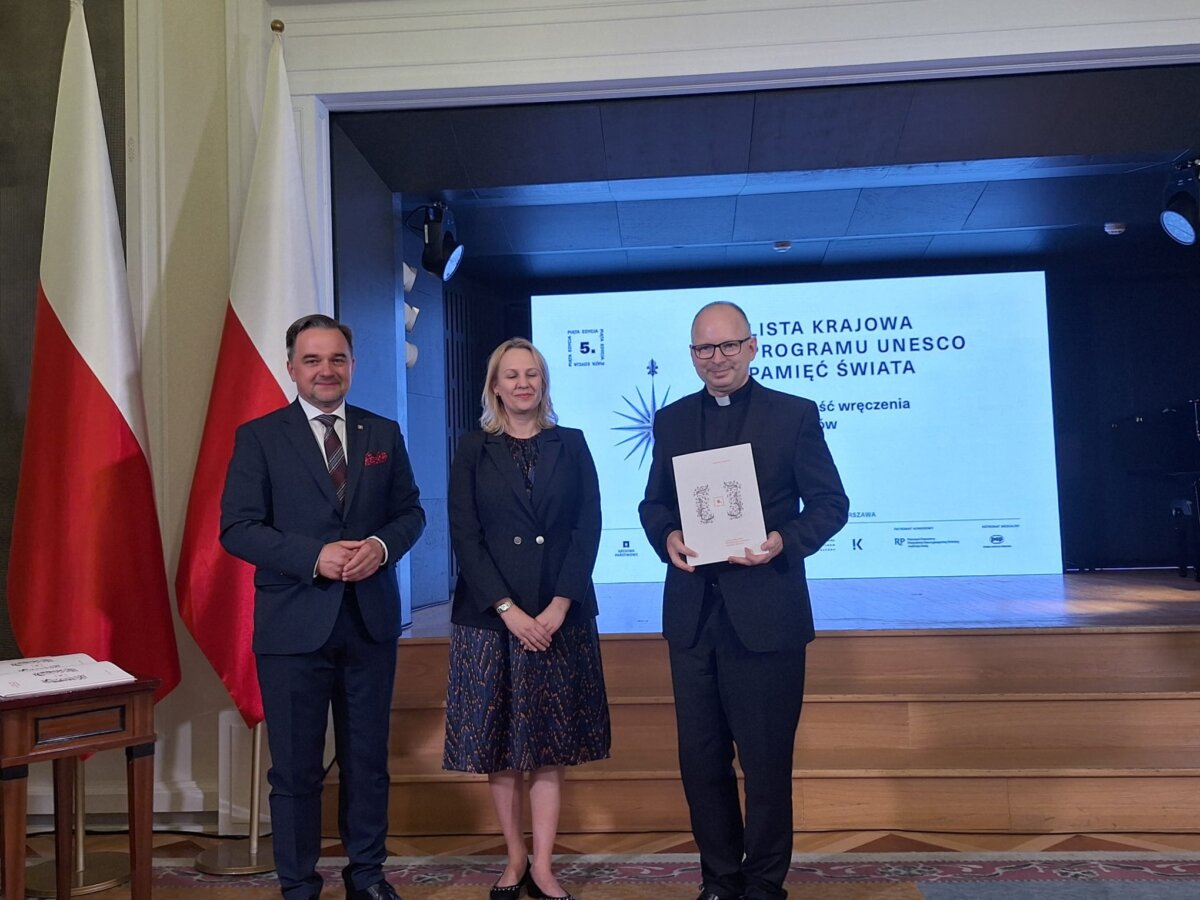 Uroczystość wręczenia certyfikatów wpisu na wspomnianą listę odbyła się 26 czerwca w Belwederze w Warszawie w obecności minister kultury i dziedzictwa narodowego. Pergaminowy dokument z Gniezna jest jednym z 17 obiektów i kolekcji, które w obecnej, piątej edycji programu, zostały umieszczone w tym prestiżowym rejestrze. Poza nim trafiły tam między innymi: kodeks rękopiśmienny z ok. 800 roku z kazaniami, czyli „Praedicationes” (Archiwum i Biblioteki Krakowskiej Kapituły Katedralnej), Akt detronizacji cara Mikołaja I z 25 stycznia 1831 roku (Biblioteka Polska w Paryżu), rękopisy dzieł symfonicznych, kameralnych i filmowych Henryka Warsa, 1947-1974 (Polish Music Center USC w Los Angeles), czy spuścizna Jerzego Kukuczki – dokumentacja fotograficzna (Fundacja Wielki Człowiek w Katowicach). Certyfikat wpisu dla dokumentu z Gniezna odebrał ks. Michał Sołomieniuk, dyrektor Archiwum Archidiecezjalnego w Gnieźnie, a księdza prymasa reprezentował jego delegat ds. kultury, ks. Jan Kasprowicz. Podczas uroczystej gali w Belwederze zaprezentowano filmu dokumentalny, promujący łącznie wszystkich 17 dokumentów oraz kolekcji. Natomiast piosenki Henryka Warsa, czyli przedwojenne szlagiery filmowe i powojenne utwory w języku angielskim, zaprezentował kwartet smyczkowy i soliści z akompaniamentem Krzesimira Dębskiego.