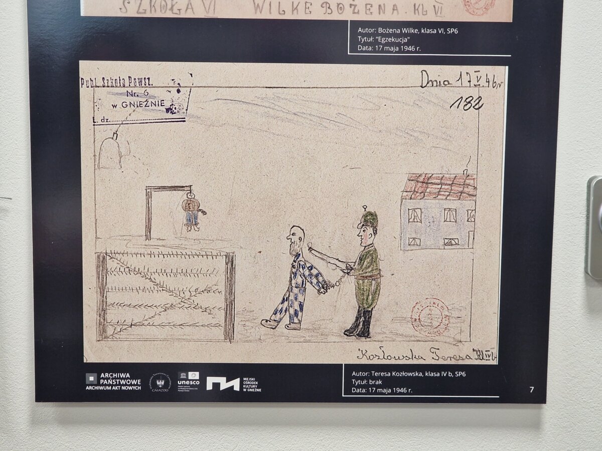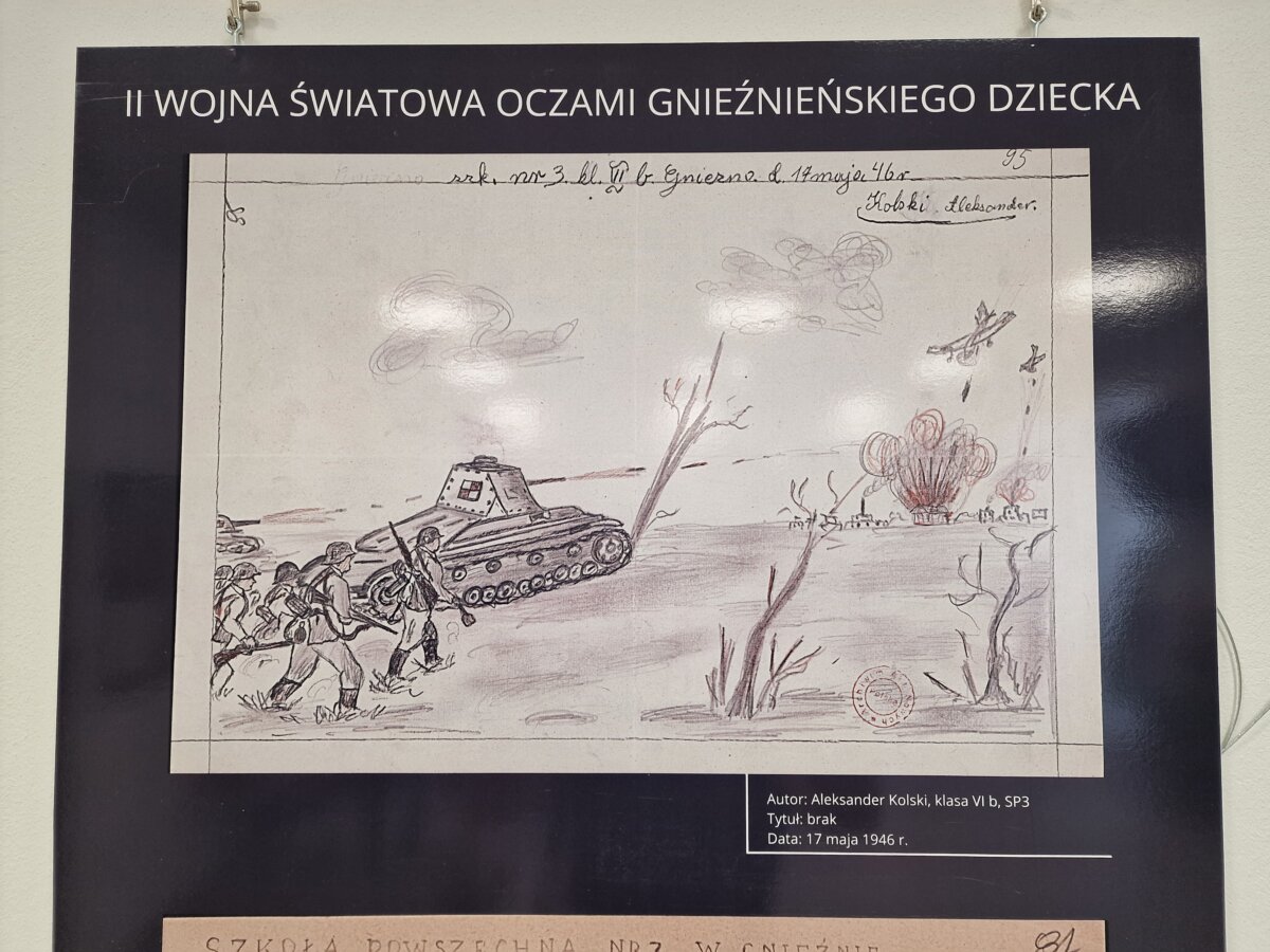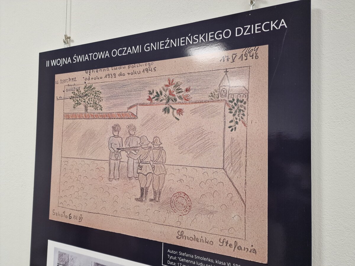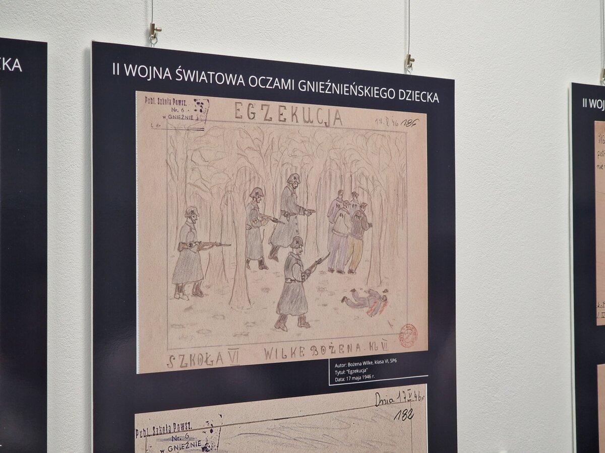 Jest wczesna wiosna 1946 roku. Zmęczone okupacją społeczeństwo stara się wracać do życia po okrucieństwie wojny, ale przeżycia tego nieznośnego czasu jeszcze przez wiele, wiele lat będą tkwić w sercach, głowach i duszach tamtego pokolenia. Szczególnie ta trauma dotknęła dzieci. Ministerstwo Oświaty organizuje konkurs rysunkowy pt. „Moje wspomnienia z dopiero co zakończonej wojny światowej”. Swoje prace nadsyłają dzieci z trzech gnieźnieńskich szkół. Dziś, po 79 latach możemy zobaczyć je znów. To bolesny, przerażający symbol okrucieństwa wojny i przestroga dla całego świata, że wojna, to zło.