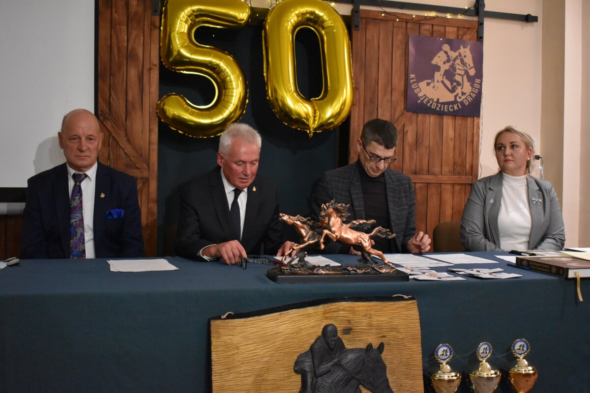 Świętowanie pięknego jubileuszu musiało mieć miejsce (oczywiście) w Stadzie Ogierów przy ulicy Kłeckoskiej. Tutaj Dragoni mają pomieszczenia swojego klubu. O tym, jak ważna jest działalność Dragona i jego jeźdźców w życiu Gniezna świadczy choćby to, że na uroczystość rocznicową przybyły tłumy klubowiczów, sympatyków koni, a wśród nich kolejne już pokolenia adeptów jeździectwa. Spotkanie zaszczyciło też 5 z 11 założycieli Dragona. – Witam was wszystkich Dragonów bardzo, bardzo serdecznie – rozpoczął uroczystość Włodzimierz Olejniczak, prezes klubu, który przypomniał wiele ciekawych kart z historii Dragona. W tej opowieści wymieniono wiele nazwisk tak mocno kojarzących się z końmi i samym jeździectwem, że z pewnością kojarzą je w Gnieźnie osoby nie tylko zaznajomione z tym sportem. – Zainteresowanie sportem jeździeckim, jazdą konną było tak duże, że wielu młodych pracowników „Polanii” chciało się dostać do tej sekcji. Wtedy, w latach 70-tych sport ten był niszowy. Kojarzony raczej z latami przeszłymi. Może nawet arystokratycznie. Był to duży wyróżnik – wspomniał prezes klubu, nawiązując także do faktu, że klub miał możliwość powstać dzięki przychylności działaczy ZZZMS przy WZO „Polania”. Pragnienie, by stać się częścią Dragona, towarzyszyło jeźdźcom nie tylko z Gniezna, ale i z całego regionu. Efektem tego było utworzenie drugiej grupy w ramach klubu, która liczyła kolejnych 20 osób. I tak było co roku przez kolejne lata. Łącznie, przez te 50 lat, przez klub przewinęło się ok. 650 osób, z czego pierwszą samodzielną jazdę zaliczyło ok. 500 z nich. – Jest to sport urazowy, trudny. Szczególnie było to widoczne w tamtych czasach, kiedy materiał hodowlany był dużo trudniejszy niż teraz. Zdarzały się upadki. Były to konie zarodowe, które miały swój temperament – wspomina W. Olejniczak.