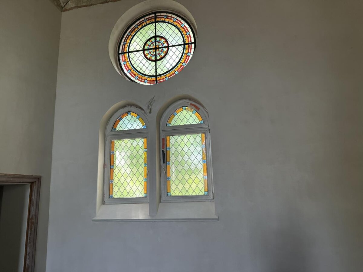 Wykonano również roboty dotyczące tynków, m.in. prace konserwatorskie związane z oczyszczeniem powierzchni ścian, odgrzybianiem, hydrofobizacją, gruntowaniem powierzchni, wykonaniem tynku renowacyjnego, wykończeniem, usunięciem elewacji pozostałości – elementów: gwoździ, haków, części pozostałych po zlikwidowanych instalacjach zewnętrznych; łączna powierzchnia tynków: 708,8 m2.