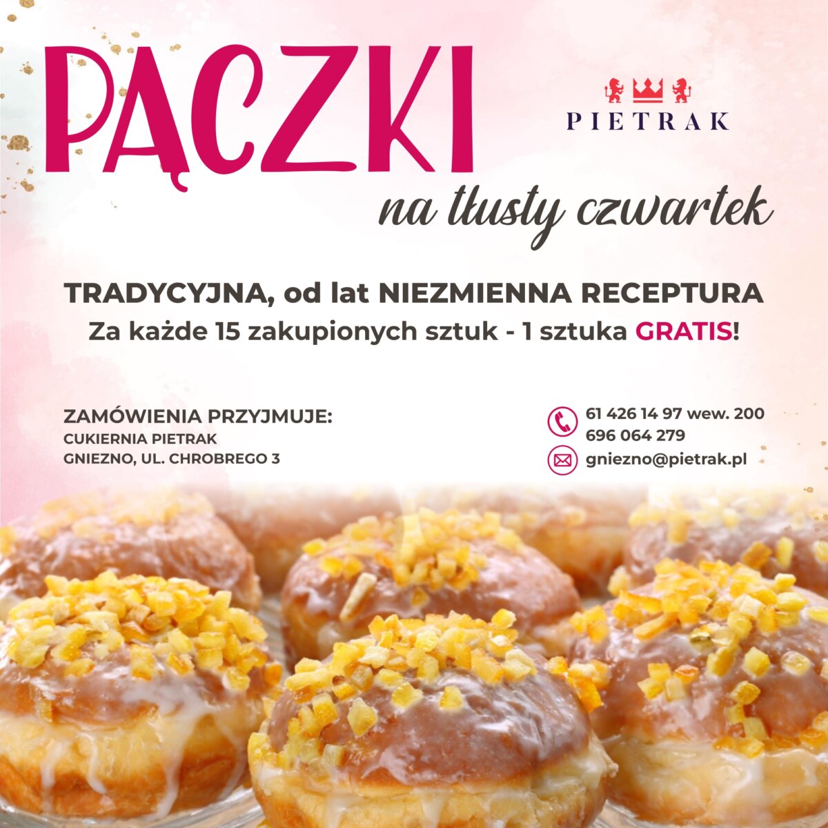 – Cukiernia Pietrak Gniezno, ul. Chrobrego 3 – 696 064 279 / 61 426 14 97