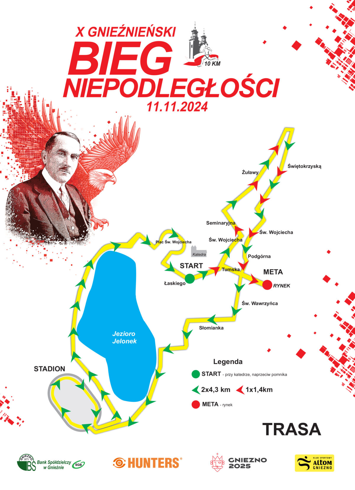 To już dziesiąta, zatem jubileuszowa edycja Gnieźnieńskiego Biegu Niepodległości – biegu, który odbywa się w wyjątkowym czasie dla Polek i Polaków. – Bieg Niepodległości to nie tylko sportowe wyzwanie, ale i piękna okazja do wspólnego przeżywania tej ważnej rocznicy. Wspólnie tworzymy atmosferę radości i jedności, symbolizując nasze przywiązanie do tradycji oraz siłę, jaką niesie życie w wolnym kraju. Do zobaczenia na starcie! – powiedział prezydent Gniezna Michał Powałowski. – Propagowanie patriotycznych idei, włączanie się w akcje charytatywne oraz wspieranie lokalnych inicjatyw m.in. takich jak Gnieźnieński Bieg Niepodległości jest dla nas bardzo ważne. Bank Spółdzielczy w Gnieźnie istnieje już ponad 150 lat, tak więc wspólne uczestnictwo i świętowanie odzyskania przez Polskę niepodległości jest dla nas zaszczytem – mówiła Barbara Borowska, prezes Banku Spółdzielczego w Gnieźnie.