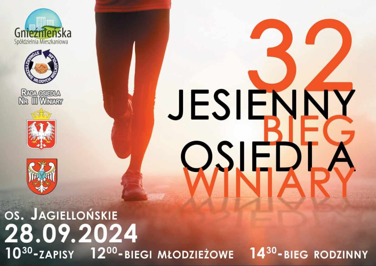 32. Jesienny Bieg Osiedla Winiary już niebawem w sobotę, 28 września na terenie osiedla Winiary. Jest to kolejna edycja organizowana przez Gnieźnieńską Spółdzielnię Mieszkaniową, Zarząd Osiedla III Winiary i Stowarzyszenie Młodych Wielkopolan.